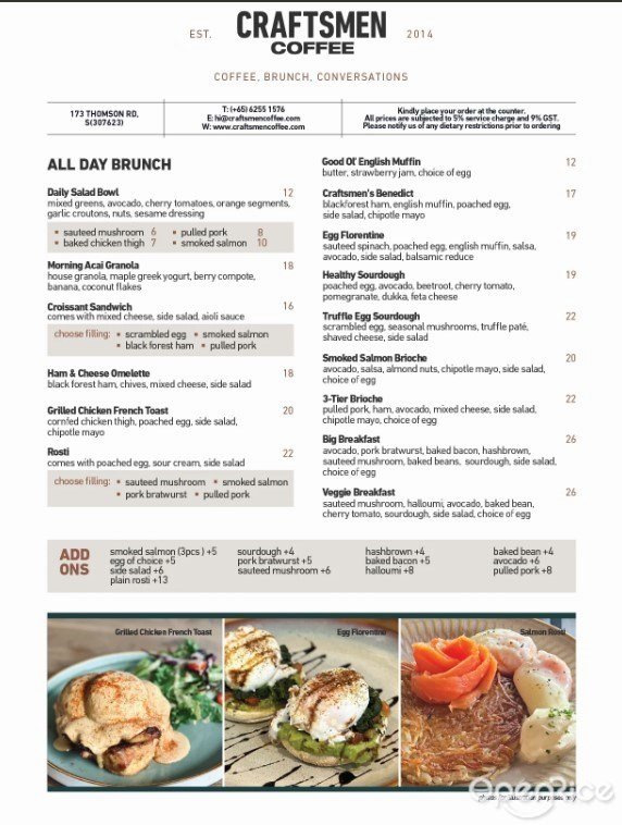 Craftsmen Coffee (新加坡) 網址: https://s.openrice.com/eKbSB011Dy0W0 地址: Goldhill Shopping Centre, 173 Thomson Road, Novena, Singapore 電話: +65 6255 1576