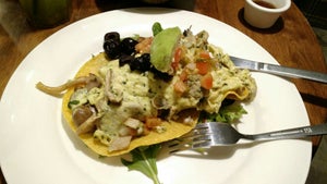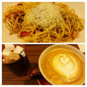 Located in the ula ula Valley Point Shopping Mall, lies this cafe. It serves casual American-inspired cuisine. It gives a cozy and homey feel as we step into the cafe. The first thing that I notice is the cute wall mural painting on the white wash wall, surrounded by the low lying tables and chairs around.Another unqiue I notice is that the tables by the bench with pillows are actually converted from the old tradtional sewing machines. So unique.As there is no service charge or GST in this cafe, one orders, pays, collects cutlery and water from the counter. A number stand will be given and food will be served to you later.Truffle Carbonara ($20)spaghetti, garlic, onion, bacon, mushroom, basil, olive oil, parmesan, fesh egg, and truffle pasteIt looks like a dish of stir fried noodles coated with eggs, topped with truffle paste and parmesan when served. Smells great too. It reminds of the Hokkien Fried Prawn Noodles with its egg coated noodles. Tastes quite flavourful.Truffle Scrambled Eggs ($18)black truffle paste, pork sausage, roasted mushrooms, tomato, greens and toastThe serving is surprising huge with the big amount of black truffle paste on top of the scrambled eggs. The stir fried sausage with tomato and mushrooms is quite tasty. But the greens the mixture is sitting on, looks a bit black. The scrambled eggs tastes a bit overcooked and lacks of creamy texture. There is 2 kinds of soups available and we order both. Each cup is served with a slice of soft chewy bread.Tomato Bisque ($5/ cup)Served in a cup, it tastes quite creamy and not too tangy.Clam Chowder ($5/ cup)The soup is creamy with bits of clam, but a bit too salty for me.Overall the food is not bad, and further more the serving is huge and more than enough for us. The staffs are quite friendly and helpful when we ask for water and small plates for sharing. Quite a relaxing place to enjoy a delicious and peaceful meal.…查看更多