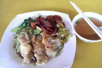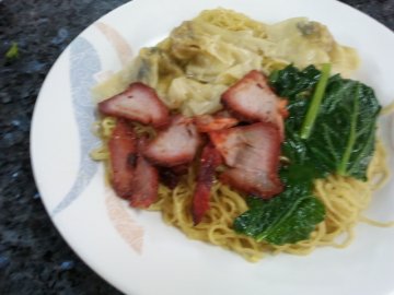 We like spinach noodle, but those that we usually had were often slightly chewy and springy in texture, similar to al-dante spaghetti. This spinach noodle ($4) has no chewiness in it, the char siew and chilli was average too. The dumpling, surprisingly, was yummy! The fillings were not full of flour and we found a whole prawn inside each dumpling!…查看更多
