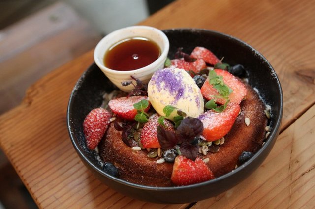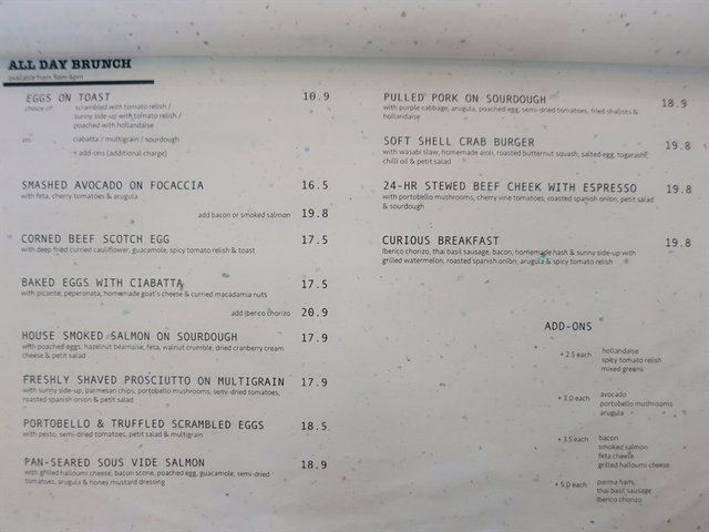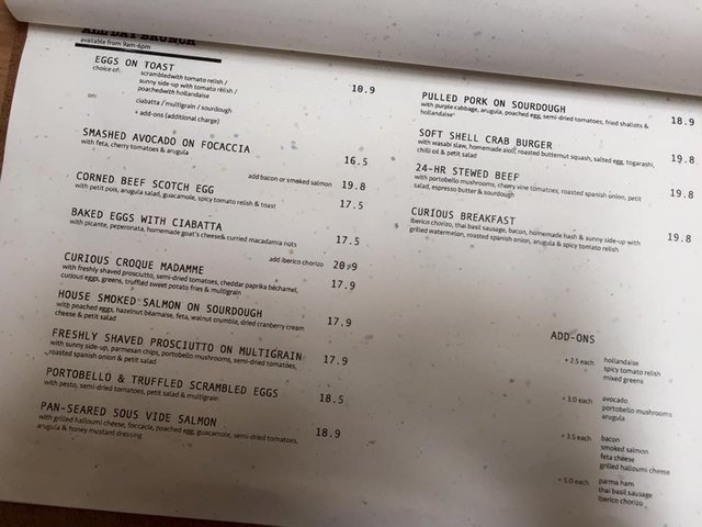 Curious Palette, known for its pretty berry ricotta hotcake, was the latest café opened by the same people behind Stranger’s Reunion & Strangers At Work. It was established at Prinsep Street. You will need a little effort in finding the place as it does not have a signboard.This two stories café could possibly seat about 200 pax. It was really popular and get really crowded during weekend. It would be recommended to make a reservation prior to visiting.It has a very simple interior design with white finishing and plywood tables. Simple yet chic. It was really comfortable dining experience despite the noisiness and long wait .Berry Ricotta Hotcake was really soft, fluffy and thick. You will get sick of eating it if you are consuming it alone. It was best shared. It was topped with strawberries, blueberries, pumpkin seeds, sunflower seeds and a scoop of vanilla bean ice cream. It was too pretty not to instagram this dish. Berry Ricotta Hotcake ($14.90)The Salty-sweet and crunchy sweet potato fries really delights us. It was great for sharing. The truffles smell was also rich. Truffled Sweet Potato Fries ($12.90)Tender well-marinated pork topped with crispy sourdough makes this dish overwhelming. We love how juicy the pulled pork was.Pulled Pork On Sourdough ($18.90)Soft Shell Crab Burger was pretty delicious. It comes with generous serving of wasabi slaw, homemade aioli, avocado and petit salad. The soft shell crab was crispy and crunchy. Soft Shell Crab Burger ($19.80)The portobello & Truffled Scrambled egg comes with pesto, semi-dried tomatoes, petit salad and multigrain. The scrambled eggs were soft and creamy with tinge of truffles smell. I personally find this dish fairly normal. Portobello & Truffled Scrambled Eggs ($18.50)…查看更多