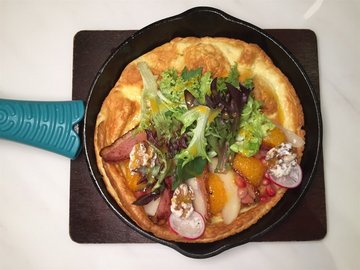 The cafe was opened in Sept by local actor Chew Chor Meng and his wife Deon Tan. It was the second outlet after the first one in Holland Village. The 65-seat café houses a London Tube and an English Garden. A red British postbox is placed outside the new branch for customers who are upset to pen down their feelings. We were showed a table at English Garden area as little JJ was struck with the swing at one of the tables. He was so in love with the swing that he wanted one at home.Spiral Galaxy ($15++)Green tea and grape juice with a spiralling visual treat.The tea change to purplish colour when mixed with the juice. The golden dust gave the drink a shimmering colour. It tasted light and refreshing.Coconut Infused Cold Brew ($9.50++)A multi-sensory experience with coconut-infused coffee.The drink was presented with lots of smoke from the dry ice. The coffee, smelt of roasted coconut, tasted not bad with hints of the coconut aftertaste.Hot Chocolate Surprise ($7.50++)A chocolate sphere, served with hot chocolate. When the hot drink was poured over the sphere, it revealed a marshmallow in it.D'Lobster Roll ($22++)Prepared from live Boston lobster. 100grams of claw and tail flesh, tarragon mayonnaise and chips.The roll was great although I wish for more sauce.LING Cod Fish and Chips ($22++)Cod fish, straight cut fish, tartar sauce and malt vinegarAlthough it sounded quite expensive, the fish was quite meaty and juicy.Pomegranate Citrus Smoked Duck ($13++)Smoked duck, pomegranate, mandarin orange, pear, greens, caramelized walnuts and citrus sauce.The pancake served here was not the usual type but Deutsch Skillet Pancake. It had a eggy texture which tasted more like Nian Gao 年糕.Overall the food was delicious. There was 10% discount for senior citizens. The staff were knowledgeable and spot on for their recommendations.…查看更多