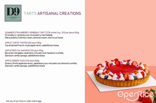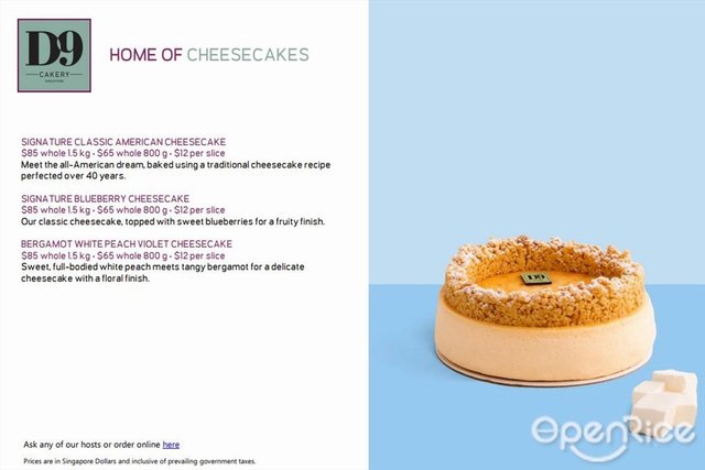 D9 Cakery (新加坡) 網上訂座即賺Rice Dollars 網址: https://s.openrice.com/eKbSB01qWa200 地址: The Shopping Gallery, 581 Orchard Road, Level 1 voco Orchard Singapore, Orchard, Singapore 電話: +65 6730 3392