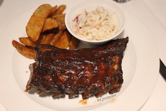 1. Half Slab of Fiery Pork Ribs $30++ Shiny with the barbecued glaze sauce, this pork rib was set out to brighten any meat lovers day! The meat was so tender, though it wasn't quite "fall of the bone", you could just fork the meat right off the bone. The meat had a slight smoky, charred flavour on the edges. On the the inside, the meat was flavourful, even without the sauce. The wedges were a great choice of carbs for this meal and were a bit crisp on the edges. The coleslaw was more of a giant clump of onions in salad sauce, skip that.2. BBQ Chicken Parma $24++ **HIGHLY RECOMMENDED**Pan-fried panko crusted chicken breast topped with melted mozzarella, grilled bacon, smokey BBQ sauce and caramelized onions. Served with salad greens and with french fries or wedges. For this price, you're getting so much meat, I couldn't believe it. This portion was made for 2 pax, not 1. The bacon was so crip on the top, together with the melted mozzarella, I knew I had to say goodbye to my diet plans.The chicken itself was tender, it wasn't dry at all, but I wouldn't say it's juicy either, since it's chicken breast meat. But together with the flavours combined by the cheese, bacon and especially the caramelized onions, the chicken was bursting with flavours. I felt that the caramelized onions were a great addition to the dish, it really gave this dish the "WOW" factor taste. I would highly recommend you to try this!3. Dallas Fajitas $28++You get a choice of tender grain-fed ribeye, chicken or vegetarian with guacomole, sour cream, salsa, caramelized onions and warm flour tortillas. The chicken was thick, tender and succulent. The presentation of the dish was rather appealing with the tri-coloured sauces on the right and the the tortillas served separated in a dim sum basket.Wrapping up tortillas can be quite fun too! The fluffy flour tortilla provided a soft texture to the chicken chunks and the sauces were there to complement the chicken. The dryness might kick in gradually, so do use up the sauces.4. Classic Fish and Chips $26++Snapper fillet dipper in batter and fried to golden brown. Red cabbage slaw, tartar sauce and Dallas fries. The edges of the fish stayed crispy throughout our entire meal!! It never turned soggy. The fish meat was so tender and fresh, it didn't taste or smell fishy. The provided tartar was perfect, not too oily, buttery and not too salty either. This was probably one of my most favourite fish and chip dishes. I usually don't pick a fish and chips dish, as I find it too "Common", with no "WOW" factor, but this is not your typical fish and chips!5. Dallas Wings $16++My friends were telling me so much about these wings, and though Entertainer does not give you any discounts on the appetizers. You would be missing out, if you didn't order these little nibblers. The skin on these wings were roasted to perfection. They're extremely crispy, not oily and with the ranch dressing, totally irresistible!I would've gotten two servings of these wings as my main if I could!6. Homemade Apple Pie $12++This picture doesn't do it any justice. This was huge! The apple chips were so juicy and overflowing with apple goodness. The caramel sauce wasn't too sweet and you could actually see the vanilla beans in the vanilla ice cream. Hurray! For legit vanilla ice cream! For those who hate the smell or taste of cinnamon, fret not! The cinnamon flavour here isn't as distinctive as you would expect in a apple pie. Overall, a perfect dessert to end ANY meal.…查看更多