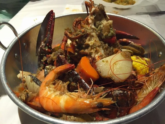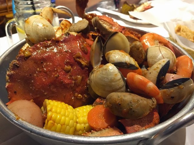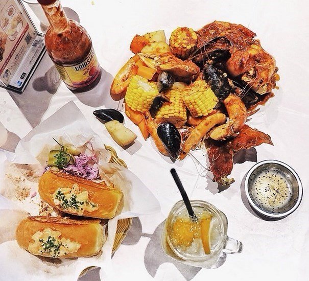 The place was pretty empty for a Saturday afternoon. We were showed to a booth table at the far end as it was one of the available pre-covered with disposable cover. There was also tissue paper and spicy hot sauce available on the table. Remember to help yourself to the plain water at the counter. Hand wash area was just next to the kitchen.Combo Bag #02 ($40++)350 grams prawns, 250 grams mussels, 300 grams clams, corn, sausagesserved with Beurre Blanc sauceWhen the food was served, we had the option to serve in the pot or pour everything onto the table. We decided to have everything on the table. The sauce was rich and creamy, went quite well with the seafood. The sausages were a tab spicy. The corn was quite juicy. The seafood was big and juicy.Washed everything down with a glass of Pink Thyme Lemonade ($4++).…查看更多