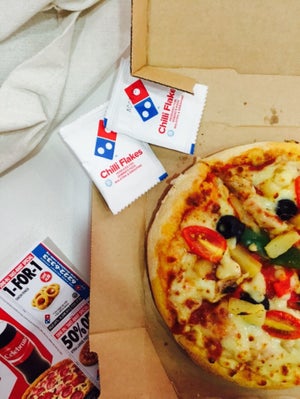 Weekend evening, feeling to eat pizza but there was not Pizza Hut in the vicinity, hence I decided to go Domino's Pizza to have a try.The menu price for the pizza was not cheap, $22.80 for regular 9" pizza. Luckily, my friend whom had patronised Domino's Pizza before, gave me a 50% off coupon.I had ordered the Hand Tossed Valenciana Mushroom Pizza. The cost ish $11.40 after discount. After ordering, I could wait at the air-condition outlet. The waiting time was about 10 minutes.The pizza was still piping hot when I reahed home. There was a heavy smell of cheese. However, the appearance looked like there was little fresh mushroom and cheese. The taste was average. There was more crust than the mushroom and cheese. The fillings of cheese and mushroom on the pizza tasted good and savoury. I could taste the fresh mushroom. But I wish there was more fillings on the pizza.Overall, I still prefer pizza from Pizzahut, their crust was more bread like and there was more fillings than Domino's.…查看更多