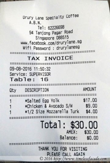We were in the vicinity of Tanjong Pagar one weekend and decided to pop by Drury Lane (one of the numerous hipster cafes that have been sprouting up like mushrooms in the past few years). Getting a table took a while and it seemed filled with youngsters in their teens to mid twenties. The Place Seating is rather limited on the ground floor where the ordering counter and kitchen is. The second level offers more seats but comes across as cramp with tables small and packed rather tightly together. One major gripe I have is the lack of air-conditioning. We had a table at one of the corners and believe me, it was warm and a little stuffy. To be fair, fans were placed at certain locations but it only benefited those who were seated directly in front. Water is self service from one of the counters located near the stairwell. Half Sized Cheese Toasties To start we had the mozzarella and turkey bacon cheese toasties (half sized). Nicely grilled on the outside but sadly, the gooey cheese and turkey bacon didn't quite feature in the taste department. Nowhere close to Toastface Grillah's but decent for the price ($4). Monterey Chicken with Avocado and Sriracha Butter The chicken came across as nicely grilled but a touch too salty whilst the whole grain bread was just dry. I liked the gooey cheese but not much of a fan of Sriracha. Average overall. Creamy Salted Egg Yolk Eggs Benedict with Grilled Prawns This was a rather interesting - Runny egg yolk atop a lightly sweet but mildly dry mantou and drenched with a rather diluted salted egg yolk custard that could use a little more robustness/richness. Packed with three decent sized, crunchy and relatively sweet prawns to justify the comparatively expensive (as opposed to other items on the menu) $17 price tag. Pretty decent dish. Bill Drury Lane serves up relatively inexpensive food in general (prices are nett) but quality hovers around the average mark. In short, just another run off the mill (but reasonably priced) cafe. No idea about the coffee though!Final Verdict:Ambience: 6/10 (a little cramp and warm)Service:NAFood: 6/10Price: 7/10Overall: 6.33/10Address: 94 Tanjong Pagar RdContact: 06222 6698Opening Hours:MON - TUES / 8AM - 6PMWED - FRI / 8AM - 9PMSAT - SUN / 9AM - 6PMWebsite: www.drurylane.sg…查看更多