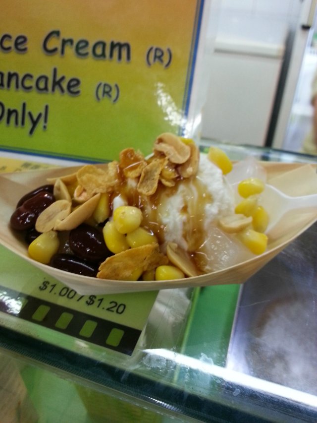 Located just next to the crazy long queue money changer at Chinatown's People Park Complex, this has got to be the best durian pancake you ever get for just... $1.50 - $2. They even have the option of having the normal size one or, if you are feeling very 'durian-ish' that day, you can even upsize the durian pancake to the JUMBO size (which really is, very gigantic). I had the durian jumbo pancake one of cos, since their specialty is the local favorite, DURIAN. If you doesn't want your mouth to stink after savoring the pancake (or don't make it even more stinky from your original stinky mouth...) you can opt for the other exotic flavors available there. Go see for yourself and decide what you want!Anyway back to the pancake. The pancake skin is very extremely crispy! I don't know the super friendly lady boss do it but it just taste sooooo crispy till you can hear the "crack crack" sound when you bite into it. Not those very thick pancake skin you buy from outside, cos you will just taste the flour taste and not the star of the food, DURIAN. They are very particular about the quality of their durian used and will changed every now and then once there's negative feedback from their customers. At last a shop which listen to the feedback from the customers!Well for the durian used, I love it. It is not very sweet like other places (sugar added!) but tasted very natural and original. The durian smell is strong but yet it smell so good (and taste too!)Not a fan of pancake? Nevermind. They have durian tapioca (what!) too which taste as good. There's even all sorts of durian snacks available to satisfy your craving for durianssss!…查看更多