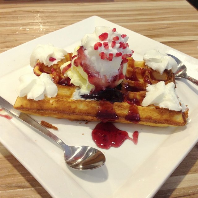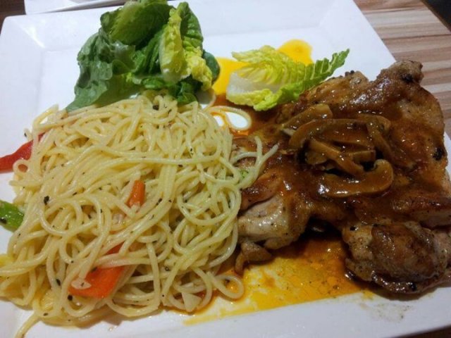 This time we ordered Vageterian Angilo & Chicken chop with Angilo Pasta.The Veg Angilo Pasta is very good in taste,But i felt dried so i ask them extra sauce of mushroom,They prepared for me & gave me with the additional minimum cost.The Chicken chop comes with black pepper mushroom sauce & very tasty angilo pasta & some veg salad.everything is good in taste.Then our cheesefries,it's good in taste & quantity also quite enough.If they serve ,lean fries instead of the thick one ,it would it be more tasty.Finally we came to our yummy icecreams.we ordered Chocolate brownie icecream & vanilla,Straberry waffle icecream.Both are ery nice.we enjoyed a lot.…查看更多
