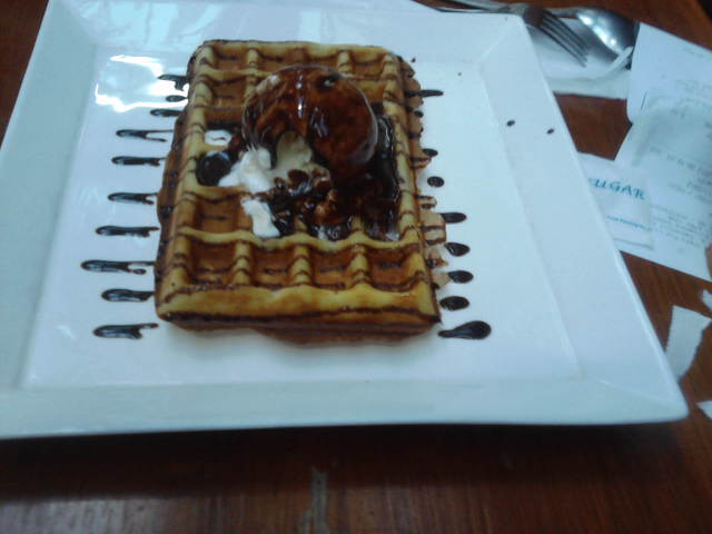 The scrabbled egg baked rice was a terrible start. It is because the mango tango which does not taste good and there is burnt too. The price is $6.40 which include ice cream and ice lemon tea.The ice cream waffle was better as it is quite crispy and ice cream taste rather good. The beautiful presentation also add mark to it.The pasta was better as it is evenly cooked and the source taste good too. The best of all is mushroom soup is very nice!! You can taste all the goodness inside. Overall the food is only an average.…查看更多