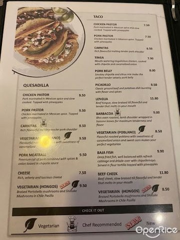 Carnitas Taco / Tinga Burrito / Picadillo Nacho Pancho / Picadillo Burrito / Tinga Burritos / Chicken Pastor Taco