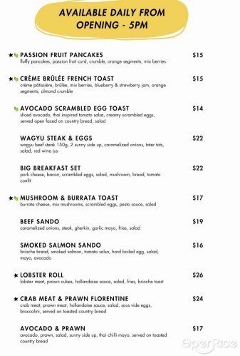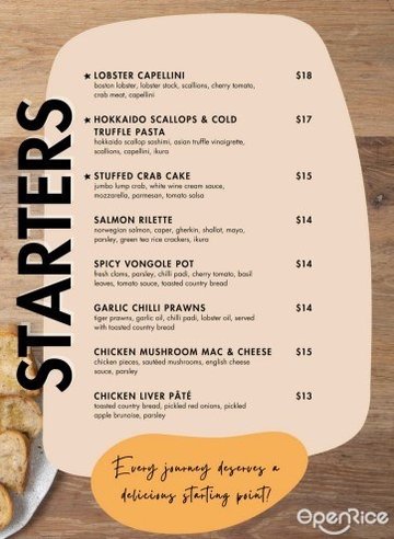 Chicken Sausage Tomate / Short Rib Pasta / Smoked Salmon & Avocado / White Crabmeat Pasta / Braised Beef Cheeks / French Apple Tart