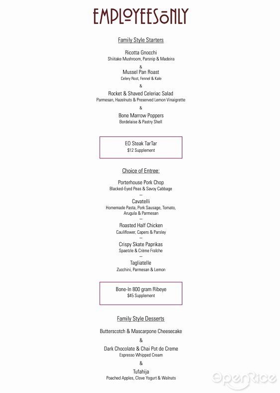 Employees Only (新加坡) 網址: https://s.openrice.com/eKbSB0181i200 地址: 112 Amoy Street, Club Street, Singapore 電話: +65 6221 7357