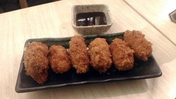 En Sakaba is a small outlet located at the first level of Orchard Central. It doesn’t have much seating space but we were able to get a table easily because we were there on a Thursday night.En Sakaba offers a variety of Japanese influenced tapas (each ranging from $8 – $15) and can be paired with their wide selection of drinks. Thankfully, I enjoyed my main meal very much so it was a good meal overall even sans drinks.First to arrive were the sea snails that reminded me of rubber in salt. I suspect I do not have the most refined palate. We initially stopped ourselves after ordering our main dishes and two sides so we wouldn’t overeat. After the snails arrived, we picked up the menu again and quickly placed an order for another side dish.Next to arrive was the edamame. The soybeans were fried with garlic till fragrant. The first few bites were good and helped us pass the time whilst waiting for our next dish. However, after a while, I didn’t fancy greasy beans anymore and wished we had ordered normal, salted edamame.We could watch as a chef prepared grilled and deep fried food at the front of the restaurant. I wonder if he finds it claustrophobic in there?My yakiniku don arrived and I loved it! Beef tataki is meant to be seared on the outside and left very rare inside, but I am still not used to meat that is too rare so I requested for mine to be thoroughly cooked. The beef was tender and soaked in sweet soy sauce with a hint of truffle. The runny yolk added a lovely flavour to the mix. My only gripe was that the the foie gras didn’t come in a bigger piece. The portion as a whole, was just right for me.A version of this without foie gras is available as a set during lunch for $15. The set lunch includes miso soup, an appetiser and salad. It's good value but I would still recommend paying more for the foie gras during dinner. Nothing to say about this. I did not try any of it because I couldn’t get past the rawness.Last to arrived were the fried oysters. I know I do not like deep fried food but I keep trying, because one day I might find something that changes my opinion on this. This wasn’t it, though. The oysters were hidden beneath a thick layer of batter and the accompanying tonkatsu sauce didn’t help much.At the end of the meal, I was pretty satisfied and I would return to try other dishes (or maybe just to have the yakiniku don again). Service was good and our food arrived quickly. I do think that the portions for side dishes are really small so you have to order a few to feel full. That ends up making it a little too pricey for a restaurant located on the ground floor of Orchard Central, where it is surrounded by the likes of Cold Stone Creamery and Coffee Bean.…查看更多