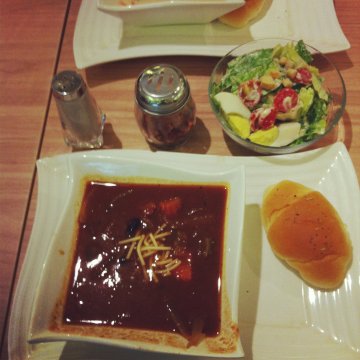 espresSoup had this lunch/tea offer until 6p.m, where a set meal costs only $5!My friend and I decided to try this store since we're a fan of soup.I ordered a minestrone soup and wanted to get the pasta but it was sold out, anyway don't despise how a small portion it looks! I had to take away half of it because somehow it was quite filling. The bread given wasn't nice at all, I'd prefer soup spoon's one over this.My friend ordered the clam chowder, which I tasted a spoon or two and I thought it was a lot better than the minestrone soup I ordered. Mine was extremely salty after eating almost half of it!I also decided to order an extra piece of crepe, and it tasted tough and not chewy. I don't think I'm going back again because it's not really to my liking. Also, the open-concept store is placed in the middle of two walkways so if you need a conversation in private, it feels quite uneasy as passersby can just stand around and look at you eat.I really love the friendly service that the staff provided though, they're willing to go the extra mile and even went through with me what each soup contains and what is the bestseller, etc.! Read More
