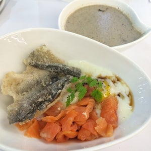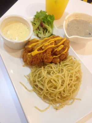 For full review - http://midas400.blogspot.sg/2014/07/espuma-lab-pomo-media-invite.htmlMy friend Wendy was invited by Mileage Comms for a Food tasting event at E'spuma Lab located at POMO (7-8mins walk from Dhoby Ghuat MRT). She brought along Pauline and myself for the tasting event.E'spuma Lab is located at the ground floor and is pretty near to the main entrance. The tiny store spots a clean and chic look with striking yellow color furnishing. Tiny but hard to miss.E'spuma Lab serves up affordable western fusion set meals cooked with either espuma or sous vide technique, usually found only at fine dining establishments.Espuma is Spanish for foam or froth, is a culinary technique in which an espuma siphon is used to infuse air into food, extruding through a N2O canister. The introduction of air in food gives it a lighter and smoother texture without changing the physical composition or taste of a dish.Sous vide is a method of cooking food sealed in airtight plastic bags in a water bath or in a temperature-controlled steam environment for longer than normal cooking times at an accurately regulated temperature much lower than normally used for cooking, typically around 55 °C (131 °F) to 60 °C (140 °F) for meats and higher for vegetables. The intention is to cook the food evenly, ensuring that the inside is properly cooked without overcooking the outside, and sealing in the moisture.After a quick registration at the store entrance, we were given some reading materials describing the culinary concept of E'spuma Lab, and the current menu and price points for the dishes served here.The food tasting session kick started with a formal introduction to the team behind E'spuma Lab. Mr Andrew Koh, the Marketing & Communications Director at E'spuma Lab, gave us a low down on their unique culinary concept, followed by a short culinary demonstration from Chef Teo Yeow Siang showcasing the espuma cooking technique.The Chef also explained how the sous vide machine works, and the technology behind creating evenly cooked dishes. We also saw more siphons and used canisters on display at the shop front.We were then treated to a delicious meal comprising of several signature dishes from E'spuma Lab. First up, Sous Vide Eggs w/ Smoked Norwegian Salmon $3.80, served with crispy salmon skin and ginger soyu. This is a tasting portion, the normal serving has got two eggs and more toppings.E'spuma surprises us with a perfectly executed and evenly cooked poached egg that is smooth and creamy from inside out. The ginger soyu sauce and the salmon toppings were a flawless union with the egg. Thumbs up!Curry Chicken w/ E'spuma Potato Foam $6.80, served with mini french baguettes. We were not given baguettes as we will be having more dishes later.The savory curry chicken cubes blends really well with the potato foam which was velvety, light and creamy, like a cream soup version of the mashed potato. Very yummy indeed.Sauteed Mushrooms w/ E'spuma Potato Foam $6.80, a vegetarian version of the curry chicken dish. Mushroom was plump and juicy, and the tasty truffle crumbles topping added a nice bite to the dish.Our main courses, Fragrant Rice w/ Cajun Chicken Leg & E'spuma Curry Sauce, Fragrant Rice w/ Pan Seared Sous Vide Chicken Breast & E'spuma Pesto Sauce and Spaghetti w/ Swedish Meatballs & E'spuma Caramelized Onion Sauce, all priced at $6.80 each.Fragrant Rice w/ Cajun Chicken Leg & E'spuma Curry Sauce, comes with a whole chicken drumstick with thigh that is steam baked till crispy on the outside but retaining its tenderness inside. Best eaten with the lightly textured curry foam sauce. The fragrant rice looks like nasi biryani but tastes like chicken rice with sweet raisins, which is quite nice actually.Spaghetti w/ Swedish Meatballs & E'spuma Caramelized Onion Sauce, comes with crispy beef meatballs and aglio olio spaghetti, served with sweet onion foam sauce. The pasta is bland on its own but taste pretty good with the onion sauce. The meatballs were also kinda ordinary until eaten with the sauce. The portion featured here is a tasting portion size.Fragrant Rice w/ Pan Seared Sous Vide Chicken Breast & E'spuma Pesto Sauce, comes with a chunky sous vide chicken beast that is lightly pan seared to achieve a slightly crispy exterior, served with pesto foam sauce. The chicken breast was evenly cooked throughout and remains moist and tender inside.Lastly, we had a small serving of dessert/snack each. There is a choice of Spiced Calamari w/ Fries $5.80 or E'spuma Batter D24 Durian Fritters $3.80, in tasting portion.I had the Durian fritters, which has a light as air crispy coating with warm and creamy durian puree inside. Its a tad sweet for my liking though but a steal at $3.80 for 5pcs. Great for those who has a sweet tooth.My drink Ice Blended Mango Blaster $2.80, a nice cooling drink to wash down the yummy meal.We had a wonderful time learning new culinary jargon and tasting uniquely prepared food that is very kind to the wallets. Thank you E'spuma Lab and Mileage Comms for arranging this tasting session. Here are some official menu photos from E'spuma Lab to pique your interest.…查看更多