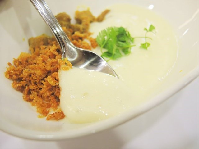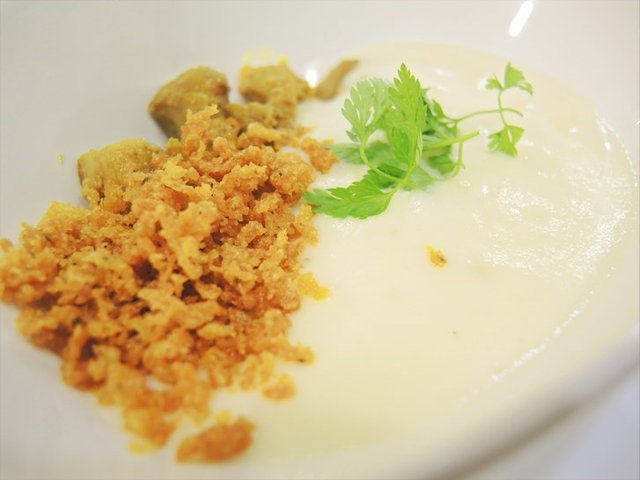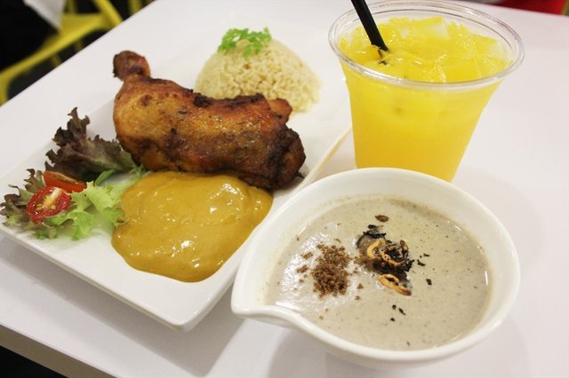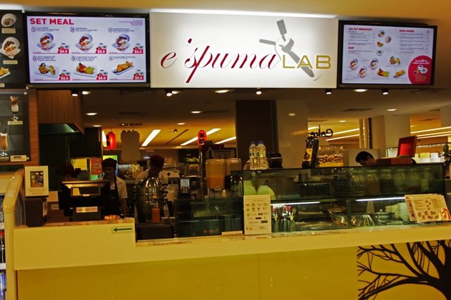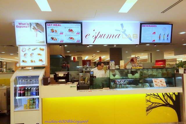 For full review - http://midas400.blogspot.sg/2014/07/espuma-lab-pomo-media-invite.htmlMy friend Wendy was invited by Mileage Comms for a Food tasting event at E'spuma Lab located at POMO (7-8mins walk from Dhoby Ghuat MRT). She brought along Pauline and myself for the tasting event.E'spuma Lab is located at the ground floor and is pretty near to the main entrance. The tiny store spots a clean and chic look with striking yellow color furnishing. Tiny but hard to miss.E'spuma Lab serves up affordable western fusion set meals cooked with either espuma or sous vide technique, usually found only at fine dining establishments.Espuma is Spanish for foam or froth, is a culinary technique in which an espuma siphon is used to infuse air into food, extruding through a N2O canister. The introduction of air in food gives it a lighter and smoother texture without changing the physical composition or taste of a dish.Sous vide is a method of cooking food sealed in airtight plastic bags in a water bath or in a temperature-controlled steam environment for longer than normal cooking times at an accurately regulated temperature much lower than normally used for cooking, typically around 55 °C (131 °F) to 60 °C (140 °F) for meats and higher for vegetables. The intention is to cook the food evenly, ensuring that the inside is properly cooked without overcooking the outside, and sealing in the moisture.After a quick registration at the store entrance, we were given some reading materials describing the culinary concept of E'spuma Lab, and the current menu and price points for the dishes served here.The food tasting session kick started with a formal introduction to the team behind E'spuma Lab. Mr Andrew Koh, the Marketing & Communications Director at E'spuma Lab, gave us a low down on their unique culinary concept, followed by a short culinary demonstration from Chef Teo Yeow Siang showcasing the espuma cooking technique.The Chef also explained how the sous vide machine works, and the technology behind creating evenly cooked dishes. We also saw more siphons and used canisters on display at the shop front.We were then treated to a delicious meal comprising of several signature dishes from E'spuma Lab. First up, Sous Vide Eggs w/ Smoked Norwegian Salmon $3.80, served with crispy salmon skin and ginger soyu. This is a tasting portion, the normal serving has got two eggs and more toppings.E'spuma surprises us with a perfectly executed and evenly cooked poached egg that is smooth and creamy from inside out. The ginger soyu sauce and the salmon toppings were a flawless union with the egg. Thumbs up!Curry Chicken w/ E'spuma Potato Foam $6.80, served with mini french baguettes. We were not given baguettes as we will be having more dishes later.The savory curry chicken cubes blends really well with the potato foam which was velvety, light and creamy, like a cream soup version of the mashed potato. Very yummy indeed.Sauteed Mushrooms w/ E'spuma Potato Foam $6.80, a vegetarian version of the curry chicken dish. Mushroom was plump and juicy, and the tasty truffle crumbles topping added a nice bite to the dish.Our main courses, Fragrant Rice w/ Cajun Chicken Leg & E'spuma Curry Sauce, Fragrant Rice w/ Pan Seared Sous Vide Chicken Breast & E'spuma Pesto Sauce and Spaghetti w/ Swedish Meatballs & E'spuma Caramelized Onion Sauce, all priced at $6.80 each.Fragrant Rice w/ Cajun Chicken Leg & E'spuma Curry Sauce, comes with a whole chicken drumstick with thigh that is steam baked till crispy on the outside but retaining its tenderness inside. Best eaten with the lightly textured curry foam sauce. The fragrant rice looks like nasi biryani but tastes like chicken rice with sweet raisins, which is quite nice actually.Spaghetti w/ Swedish Meatballs & E'spuma Caramelized Onion Sauce, comes with crispy beef meatballs and aglio olio spaghetti, served with sweet onion foam sauce. The pasta is bland on its own but taste pretty good with the onion sauce. The meatballs were also kinda ordinary until eaten with the sauce. The portion featured here is a tasting portion size.Fragrant Rice w/ Pan Seared Sous Vide Chicken Breast & E'spuma Pesto Sauce, comes with a chunky sous vide chicken beast that is lightly pan seared to achieve a slightly crispy exterior, served with pesto foam sauce. The chicken breast was evenly cooked throughout and remains moist and tender inside.Lastly, we had a small serving of dessert/snack each. There is a choice of Spiced Calamari w/ Fries $5.80 or E'spuma Batter D24 Durian Fritters $3.80, in tasting portion.I had the Durian fritters, which has a light as air crispy coating with warm and creamy durian puree inside. Its a tad sweet for my liking though but a steal at $3.80 for 5pcs. Great for those who has a sweet tooth.My drink Ice Blended Mango Blaster $2.80, a nice cooling drink to wash down the yummy meal.We had a wonderful time learning new culinary jargon and tasting uniquely prepared food that is very kind to the wallets. Thank you E'spuma Lab and Mileage Comms for arranging this tasting session. Here are some official menu photos from E'spuma Lab to pique your interest.…查看更多