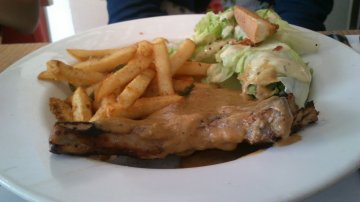 A few of us met up for lunch at Everything With Fries. There's basically two main branches. The first one is located at Joo Chiat, opposite 112 Katong Mall while the other branch is located at Holland Village. They also started a fast food concept outlets at Orchard Central. I heard that Bugis is having another branch as well?We went to the Joo Chiat outlet because I say so :) Joo Chiat is one of favourite hangout spots in Singapore. Katong Laska, Creme Burlee, Durain Cream Puffs, Pratas, Escargots and even tiramisu! You name it and most likely you will find them in Joo Chiat!Since it's called Everything with Fries, apart from desserts, everything comes literally with fries! You can choose shoestrings over straight cuts fries as well as the types of seasoning. Look at the photo above for choices. But don't expect too much from their fries. It's definitely better than you MacDonald's rendition but that's all. Nothing really special. In fact, it seems that their standard of fries has dropped since my last visit a few months ago.The One Egg Soup ($4.90). In Everything With Fries opinion, a must try. A chicken cream soup that has a tinge of sour cream to it accompanied by a large fried egg. If you ever notice, the fried egg has no yolk? That's because the yolk has been used to thicken the soup.In our opinion, the fried egg went well with the soup but there wasn't a WOW factor. If you're trying it for the first time, well by all means go ahead. But for me, I would rather use the money to buy their cakes! Particularly their Nutella Tarts! Awesome stuffs I tell you but I didn't get it this time...Wild New Zealand Breaded Salmon With Original Straight Cuts ($13.90). Being a salmon fan myself, I can easily tell a well cooked salmon from a not so well cooked one. They say there's a difference between farm raised and wild salmon. Unless you're a food connoisseur, you won't really tell much of a difference.At least I can't. From the color of the meat, I could tell that it's not fully cooked. But that's the essence of eating salmon. It's flaky but it's soft and it retains the full flavors of the fish.Grilled Pork Chop With Curry Powder Shoestrings ($13.90). A piece of Pork Chop that is grilled to give that nutty and smoky taste is by no means an easy feat! Firstly apart from inducing the smoking taste to the meat, one has to ensure that the meat retains the moisture and tenderness while not overcooking the meat. See what I mean?In my opinion, the miso sauce by itself is a bit sourish and salty. The purpose of the miso sauce should be to complement the flavors of the meat. A good combination and in my opinion a must try if you ever pop by.Lamb Burger ($11.90) or I should say Lamb Burgers since four of us got the same thing :) A fat and juicy piece of lamb sitting in between two homemade bread. The tomato and onion relish adds a tinge of sweetness and sourness with every bite. The meat itself was not tough as I might have expected. Again, looks can be deceiving...When it comes to burger, some prefer lifting the whole thing happily munch on it. Some prefer dissecting the it into smaller portions. Whichever way you decide, there's no right or wrong! What matters is we are enjoying every moment with our burger!All in all, the price seemed to increased by a lot since my last visitation of the place. The fries doesn't taste as good before. I am guessing that the landlord might have increased their rental but still, that doesn't mean the quality should be compromised right?…查看更多