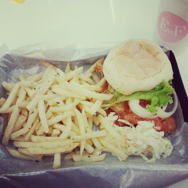 I was strolling inside Orchard Central when I found this fast food restaurant that was crowded with youngsters. I thought why not give it a try since it was loved by many people. Btw, Everything With Fries or EWF is a fast food restaurant that serves mostly burgers and fries. They also sell desserts but I wasn’t in the mood for something sweet. For my dinner, I decided on the EWF Super Burger (meal) ($11.90++) which was kind of mehhh. The bun was pillowy but I would like it better if it was a bit crispy. On the other hand, the meat was quite burnt so it was a little bit bitter. AND no, it wasn’t juicy at all. I was so grateful that I ordered the meal one as the Barbecue French Fries was lovely. It was seasoned greatly, crispy, and thinly cut. It was a decent finger food. While the burger was disappointing, I was satisfied with the Barbecue French Fries. Next time, I’m just going to order the French Fries.www.nonatukangmakan.com…查看更多