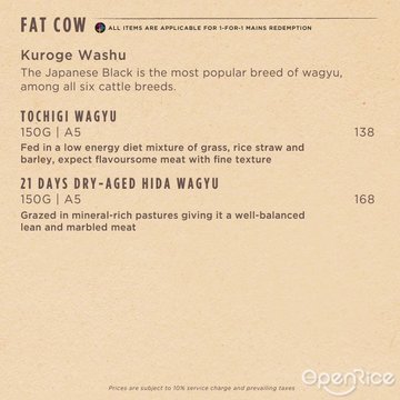 A couple of us dropped by Fat Cow for lunch one weekday afternoon after hearing so much about their signature wagyu donburi. The Place Located at a corner of Camden Medical Centre, Fatcow took quite a bit of finding as there didn't seem to be any clear signs as to where exactly the place was from the carpark. But we finally found the place and were led into a "private" room for the 8 of us; "private" because it was really just part of the main bar area with a paper thin partition that afforded some visual privacy (no respite from the noise though). Salad, Miso Soup & Chawanmushi A side of fresh salad, miso soup and chawanmushi came as a side to our set lunch. I personally liked the chawanmushi; smooth and light without coming across as too eggy and served with a slice of scallop, mushroom and prawn. The Fat Cow Donburi And the sole reason why we were here; the namesake Fat Cow Donburi. I ordered my wagyu medium rare but it seemed a touch undercooked even though the flavours were good; salty with a robust beefiness but a little lacking in the juiciness. The wobbly onsen egg imbued the dish with a creamy texture. A good dish but lacked the wow factor in my humble opinion. Ice Cream A tiny scoop of smooth and creamy caramel ice cream (probably the size of 2 quail eggs) capped off our meal. Inadequate but appreciated nonetheless. Bill The 8 of us racked up a bill of ~$480 and though good, doesn't quite justify the quality and quantity of food honestly. We left the restaurant feeling a little unsatisfied to be honest. Service overall was decent but tea refills need to be more forthcoming, especially at $5++/pax. Will I be back? I highly doubt so, unless someone is picking up the check.Final Verdict:Ambience: 6.5/10 (For the "private room")Service: 6.5/10Food: 7/10Value for money: 6/10Overall: 6.5/10Address: #01-01 Camden Medical CentreContact: 6735 0308Opening Hours:Lunch Monday to Sunday: 12PM to 3PM (Last order at 2.30PM)DinnerMonday to Sunday: 6PM to 11PM (Last order at 10.30PM)Website: http://www.fat-cow.com.sg/…查看更多