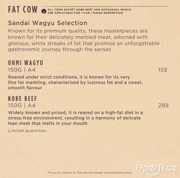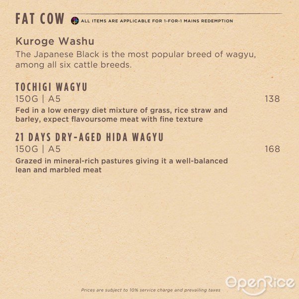 Fat Cow (新加坡) 網上訂座即賺Rice Dollars 網址: https://s.openrice.com/eKbSB01Rs0000 地址: Camden Medical Center, 1 Orchard Boulevard, #01-01/02, Orchard, Singapore 電話: +65 6735 0308