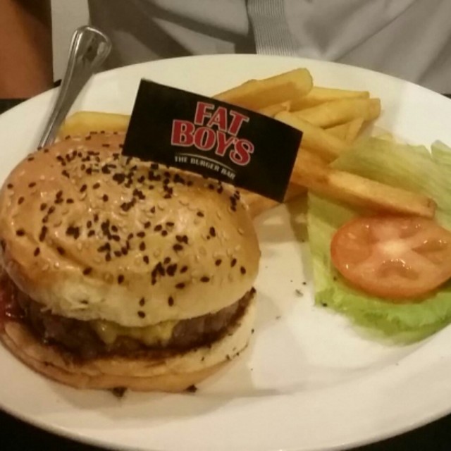 Full Fatboy's The Burger Bar review here: http://ivanteh-runningman.blogspot.sg/2014/05/fatboys-burger-bar.htmlFatboy's The Burger Bar is among the first burger concept restaurants in Singapore, having first opened its doors in 2009. Known for their wide variety of ingredients and creative burger toppings, Fatboy's The Burger Bar is especially loved for their 'Create-Your-Own-Burger' concept. Sadly, most of their modern day competitors seem to have caught up, and even surpassed them, in terms of overall taste and quality of burgers.Ambience at Fatboy's The Burger Bar is styled after the typical American diner, with white and black checkerboard patterns and garish, loud red for contrast. Walls are adorned with whimical artwork. Furniture is well laid out in a grid pattern, mostly featuring benches or bar stools. I dislike the dim interior lighting though, as well as the relatively open concept of the place, as high ambient temperatures make it rather warm at times.Service at Fatboy's The Burger Bar is decent. Staff are young part-timers mostly, and while they are friendly and knowledgable on the menu, able to make recommendations or recite special offers, their service isn't that memorable or special. Functional service at best, could be a lot better.Food at Fatboy's The Burger Bar focuses on American diner style food such as deep fried items, sandwiches, with the star item being burgers. With 3 types of burger buns, 5 types of meat patties, 20 types of toppings, and 10 types of sauces, there is nearly an endless combination of burgers you can create at Fatboy's The Burger Bar.Alternatively, choose from one of the ready-made recipes on the menu. Prices at Fatboy's The Burger Bar are lower than most of their competitors, and very affordable. However, overall taste and quality is only slightly above average at best. Can you get tastier burgers elsewhere? Yes. Ultimately, I would probably only visit if I was nearby, and I certainly won't go out of my way just to dine here.I loved the Swiss Shroom (SGD $13.80), featuring a juicy, tender, beef chuck patty, which isn't too tightly packed or dense. The sauteed shiitake mushrooms add a yummy burst of flavour, and the garlic aioli on a whole meal bun enhance the overall taste. The melted swiss cheese isn't really melted though, as this firm cheese just kind of blankets the burger rather than enveloping it.A house special, the home made Beer Battered Onion Rings (SGD $7.50) are excellent! Thickly sliced, fresh onions are battered in a savoury beer and herb batter, deep fried till crisp, then served with a homemade BBQ / barbecue sauce that is tangy and slightly sweet. Highly recommended!…查看更多