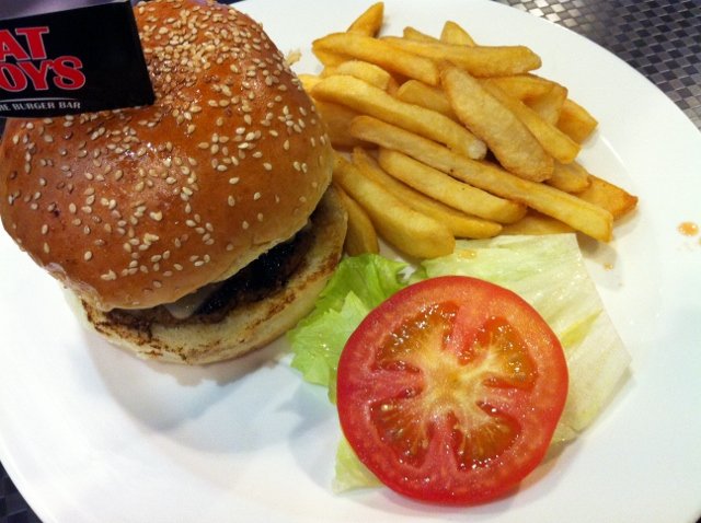 Full Fatboy's The Burger Bar review here: http://ivanteh-runningman.blogspot.sg/2014/05/fatboys-burger-bar.htmlFatboy's The Burger Bar is among the first burger concept restaurants in Singapore, having first opened its doors in 2009. Known for their wide variety of ingredients and creative burger toppings, Fatboy's The Burger Bar is especially loved for their 'Create-Your-Own-Burger' concept. Sadly, most of their modern day competitors seem to have caught up, and even surpassed them, in terms of overall taste and quality of burgers.Ambience at Fatboy's The Burger Bar is styled after the typical American diner, with white and black checkerboard patterns and garish, loud red for contrast. Walls are adorned with whimical artwork. Furniture is well laid out in a grid pattern, mostly featuring benches or bar stools. I dislike the dim interior lighting though, as well as the relatively open concept of the place, as high ambient temperatures make it rather warm at times.Service at Fatboy's The Burger Bar is decent. Staff are young part-timers mostly, and while they are friendly and knowledgable on the menu, able to make recommendations or recite special offers, their service isn't that memorable or special. Functional service at best, could be a lot better.Food at Fatboy's The Burger Bar focuses on American diner style food such as deep fried items, sandwiches, with the star item being burgers. With 3 types of burger buns, 5 types of meat patties, 20 types of toppings, and 10 types of sauces, there is nearly an endless combination of burgers you can create at Fatboy's The Burger Bar.Alternatively, choose from one of the ready-made recipes on the menu. Prices at Fatboy's The Burger Bar are lower than most of their competitors, and very affordable. However, overall taste and quality is only slightly above average at best. Can you get tastier burgers elsewhere? Yes. Ultimately, I would probably only visit if I was nearby, and I certainly won't go out of my way just to dine here.I loved the Swiss Shroom (SGD $13.80), featuring a juicy, tender, beef chuck patty, which isn't too tightly packed or dense. The sauteed shiitake mushrooms add a yummy burst of flavour, and the garlic aioli on a whole meal bun enhance the overall taste. The melted swiss cheese isn't really melted though, as this firm cheese just kind of blankets the burger rather than enveloping it.A house special, the home made Beer Battered Onion Rings (SGD $7.50) are excellent! Thickly sliced, fresh onions are battered in a savoury beer and herb batter, deep fried till crisp, then served with a homemade BBQ / barbecue sauce that is tangy and slightly sweet. Highly recommended!…查看更多