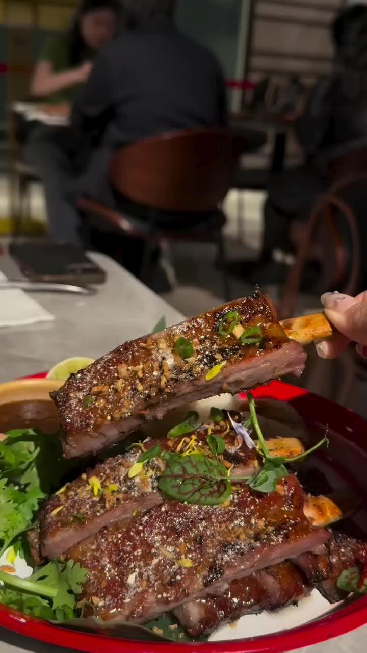 Fi Woodfire Thai (ไฟ) brings Singapore’s first wood-fire Thai kitchen to Orchard Road from its open-concept grill at Shaw Centre, Level 3. Fi cooks with real flame and lychee wood for bold, modern flavours. Don’t miss the Signature Moo Ping Pork Rib: a generous slab slow-grilled till tender, flame-kissed, and served with coconut-glazed sticky rice cake and Nam Jim Jaew. Other favourites include French Poulet (Half) with chicken-liver jaew, River Prawn with Thai garlic chips, and Pineapple Rice Stack. The room blends limewashed walls, raw textures, and an intimate bar facing the fire; choose counter seats for a front-row view or cosy tables for date night. Weekday lunch sets are fast yet full-flavoured; evenings lean into Thai-twisted cocktails. Nearby: Orchard MRT, ION Orchard, Shaw House Lido, Wheelock Place. Good for lunches, celebrations, and anyone who loves food cooked over real flame.