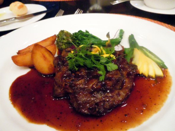 。野菌湯,餐前先由侍應奉上每人一客野菌湯和一個小餐包,餐湯頗大碗,但最重是有水準,菌香味濃,幼滑柔順。小餐包則中規中矩,只提供橄欖油蘸點。前菜方面,大致上有8款,小弟覺得都是精選,包括:露筍沙律、烤蔬菜拼盤、雞肉腸、新薯沙律、蕃茄配水牛芝士、西班牙火腿搭哈蜜瓜……等等,款款味美有質素