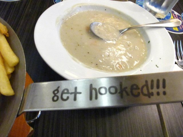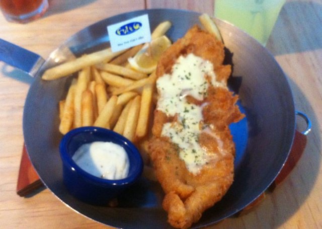 I had dined at fish & co many times and had great experiences there. Decided to have a late lunch/ early dinner with my friends at Fish & Co at around 4pm. As it was before 6pm, There were quite a few attractive value meals: One main course, salad buffet and a drink priced at $14.95++ . The restaurant was not crowded at that time hence the ambience was relaxed and nice. However i feel that the seats for table for 4 was quite small , therefore if we were to order appetizers, there will not be sufficient space to place all our food :/ i decided to order the student promo New york fish and chips New york fish and chips @ $9.75 nettAppearance wise, the portion was quite big with a generous serving of fries, The battered fish was golden brown and fried to perfection. The meat was really soft and tasty! There was also parmesan cheese in the meat itself. Personally, i do not like the cheese taste in the fish though, will stick to ordering the original fish and chips next time! The fries tasted great too with the tartar sauce