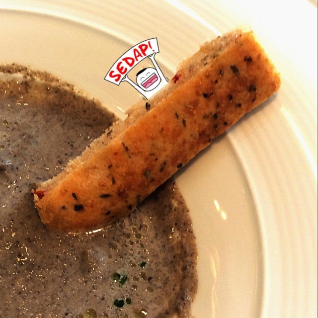 The appetizer of Smoked Salmon Rosettes with Blinis, Citrus, Bottarga, Creme Fraiche was a delightful start, being a photogenic dish with an ensemble of tastes to complement. I love how the smoked salmon were sliced into ribbons and folded, this was very well cured. The little pikelets were fluffy without an overdose of baking soda. The citrus touch and mustard cress creates an added dimension to the platter, and sets the tone for the meal ahead. Both food presentation and taste hit the spot.The cream of mushroom soup doesn't appear outstanding, but the richness and consistency of the mushroom soup with a dash of chives, pepper, and truffle oil made for a quality mushroom soup.There was a choice of grilled beef striploin (Shermaine's!) for main course. The slab of beef was drizzled in black pepper sauce. Although it was difficult to slice, the beef was actually quite springy to bite and flavourful.The other choice of main course was the seared fillet of barramundi, which was perched in a ragout of white beans and carrots. The fish was really fresh, tender and savoury for barramundi, though I wasn't too excited about the ragout which was rather flat to me - perhaps the previous dishes were much too strong in flavours.Of course, the one that I've always been waiting for eagerly is the dessert, dark chocolate cake. It is a common dessert that can almost be found in every restaurant, but the way they craft it is always different. Some love to do it in a molten lava cake with ice-cream, others rich velvety dark chocolate. Flutes's rendition is non-cloying and mildly sweet, decorated with caramelised walnut and blueberries, dipped in sweet creme anglaise. The cake was well-done in that it wasn't overpowering... I could almost hear it say - "Heh, admit that I'm good. You can't say anything else." Yes, it was, and I polished it off the plate.…查看更多