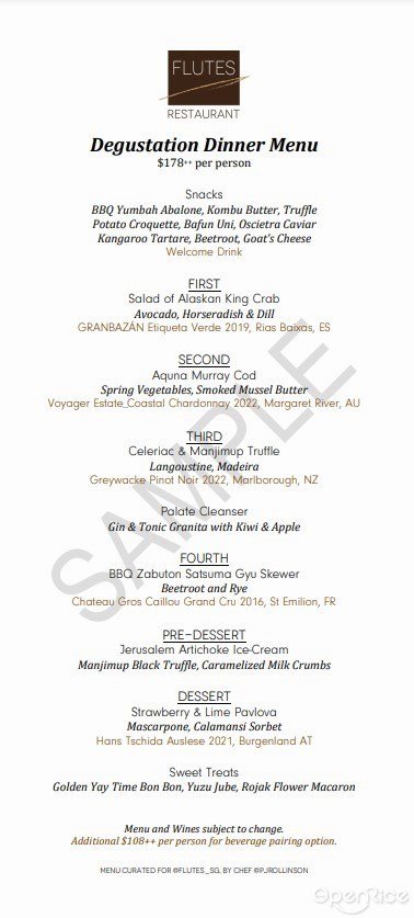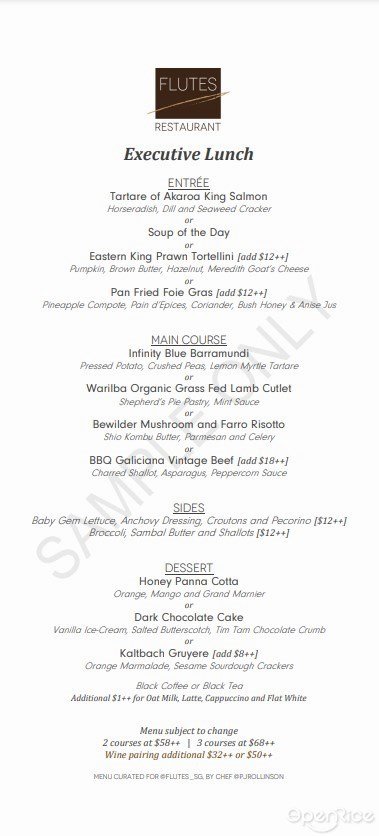 Flutes Restaurant Bar (新加坡) 網址: https://s.openrice.com/eKbSB01g2a100 地址: Guoco Midtown House, 120 Beach Rd, #01-02, Dhoby Ghaut, Singapore 電話: +65 6338 8770