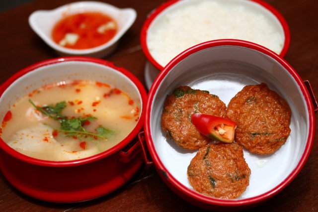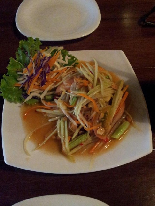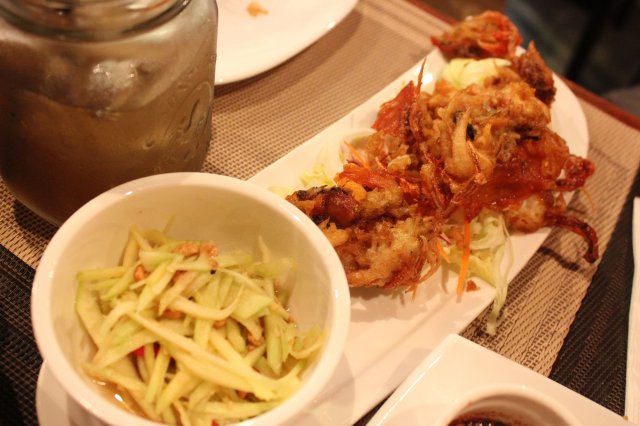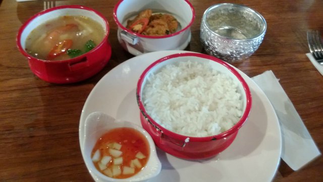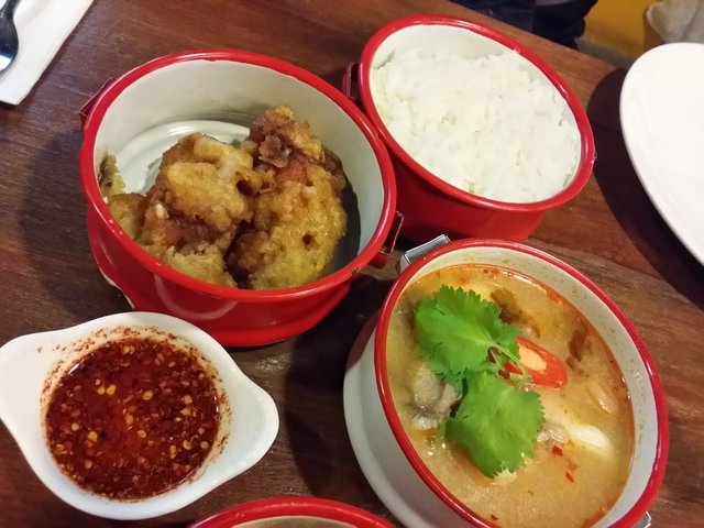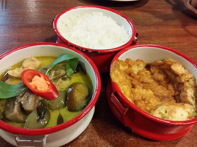 Came with my family to discover the restaurant very quiet on a Sunday afternoon. Only another family other than us. We ordered many of their signature dishes and though there were not many people ordering, the food took a while to come. Lucky for us, we were enjoying a lazy Sunday lunch so we were in no rush. We saw later that the kitchen was only manned by 1 chef so maybe that's why. The food is actually not bad, some were even very good. The not-bad ones were:1) Cashew Nut Chicken - a tad spicy and served over a basket of yam!2) Grilled Pork Collar - not much taste on it's own but the accompanying dip was too sour for my liking3) Okra - normal nice4) Pad Thai Seafood - texture ok but a tad too sweet for my likingThe food dishes were: 1) Basil Stir-fried Pork - I didn't have any as my eldest girl ate them all and did a 👍🏼 when I exclaimed "no more for me?!"2) Crispy Fish Skin - super crispy and laced with salted egg = Yumz3) Olive Rice - nicely fried and fully flavour, another favourite of my eldest girl4) Pandan Chicken - good marination so the meat was tasty and nicely fragranced with pandan5) Prawn Cake - not the factory made ones, you can tell from the bits of prawn in the patty. Was the right kind of crunch6) Red Curry with Roast Duck - this is an interesting dish with mild lychee sweetness and red curry spiciness in a good combo! 7) Soft Shell Crab Salad - didn't see much of the salad but the crispy soft shell crab made up for the dish8) Tom Yam Potaek - not a big bowl but the ingredients were fresh and the soup not overly spicy that it'll kill your tastebuds. 9) Street Omelette with minced Pork - fluffy egg fried with minced pork and onion strips! Let's just say the kids ate through the first one so fast that we had to order another!…查看更多