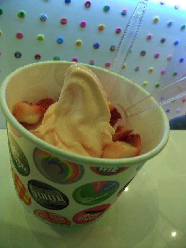 Game for some yummy yogurt in town? Come to Frolick, and enjoy one (or more) cups of frozen yogurt (what they call fro-yo). I love the smooth texture of the yogurt which melts in the mouth. Although there are not many flavours to choose from, it is still a delight with these choices. The original is not sweet (which I prefer) and healthy. The Apple flavour is refreshing in your mouth, with a light aromatic after-taste. We have 3 to 4 cups shared among 2 people. I enjoy the experience!…查看更多