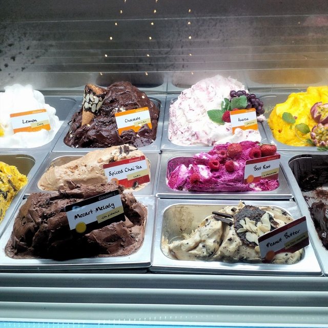 Giovanni L.is an award-winning gelato / ice-cream parlour that was originated from Germany, and has been brought into Singapore, so that we get to enjoy delicious gelato that comes in many exotic flavours. I also dug the gold and silver cone that is their signature emblem, as well as the cherub statues perching on top of the gold-lit signboard.The were many flavours to choose from - whether you prefer something creamy, conventional, fruity or alcoholic. Classic flavours start from SGD$4.90 per scoop, and the Premium flavours cost SGD$5.90 onwards for a scoop.I loved the Classic Cone, consisting of Amarena gelato, Chocolate VIC gelato and Eggnog gelato - all three of my most favorite flavours tonight. I loved the creamy texture of the Amarena paired with zesty-ness amongst the sweetness, and of course I am a cherries fan. The Chocolate VIC comprised bittersweet notes of dark chocolate in this very rich flavour, my beloved elements all found in one scoop. And the Eggnog flavour reminds me of Christmas; the alcoholic taste here is distinctive without being overpowering.The Caramella Affogato (SGD$8.90) is a composition of crunchy pieces of caramel, crispy popcorn, vanilla gelato and espresso shot - adding bites and crunch to this creamy drink. There are 3 affogato available here, each one seemingly interesting.For full review and more detailed information, please feel free to visit:http://thearcticstar.blogspot.sg/2015/08/media-invite-ice-cream-at-giovanni-l.html…查看更多