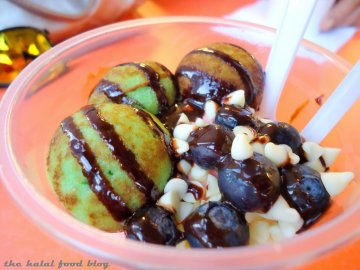 So we chanced upon this place while we were actually next door buying some kain and baju.It's a good thing I stepped out for a breather and happened to notice it because it wasn't there the last time I visited (whch to be fair was quite long ago).So it's a place called Gofre.And I'm not 100% sure but my research tells me that Gofre loosely translates to 'Waffle'.Which happens to be one of the specialties here.And when you have waffles, you're almost definitely going to have Ice-Cream.Just a simple cup of ice-cream with no additional topping and it was more than satisfying!Sometimes, something simple is enough!The Triple Chocolate really lived up to its name with a rich chocolate flavour and laced with chocolate chips.You chocolate lovers will really enjoy this. You can even chocolatify (is that a real word?) it further by adding on some chocolate toppings!But if you're looking for something other than Chocolate, they also have French Vanilla, Minty Chocolate Chips, Coconut, Salted Caramel, Macadamia Caramel and my personal favourite - Strawberry.A check with the person serving us the ice-cream and we found out that the ice-cream is handmade but not on location. They actually purchase the ice-cream from a local source which means it's fresh and guaranteed to be a good quality.So my darling wife and I were almost going to try the signature offering there which was the Gofre (waffle) but we decided to try something a little different that caught our attention.So Waffle Pops are basically little balls made out of the waffle batter.You can choose from either the normal waffle batter or the Pandan flavoured one. We chose the latter.And please do not be fooled. These are not your average Pandan Dough Balls.This the real deal with a really thick one for you to chomp down on.Nice and dense and it doesn't get too soggy from soaking up all the ice-cream. Nice Pandan flavour too!So you have Pandan Waffle Balls with ice-cream and some toppings.We chose to add on some White Chocolate Chips and Blueberries to give it a nice sweet and tart finish.You could also choose from other toppings like Mixed Nuts, Fruity Pebbles, Banana Nut Crunch, Love Letters, Cocoa Crunch or Rainbow Sprinkles.And let me tell you - the Strawberry Ice-Cream is delicious!!It's not overly sweet and just tart enough that you can tell that whoever made the ice-cream use real fruits.It's a pretty small place and easy to miss but if you're in the area and you want a sweet treat (they also have coffee and other beverages like Sodas), look around the corner of Zam-Zam Restaurant and you'll find this little gem.I'm not sure if they rotate or change their ice-cream flavours and toppings but hopefully they do so that we have more variety to choose from! Here's to more Gofre soon!!For the full review and more mouth watering pics, visit my blog!http://thehalalfoodblog.blogspot.sg/2014/02/gofre.html…ดูเพิ่มเติม