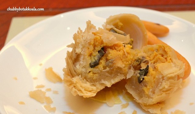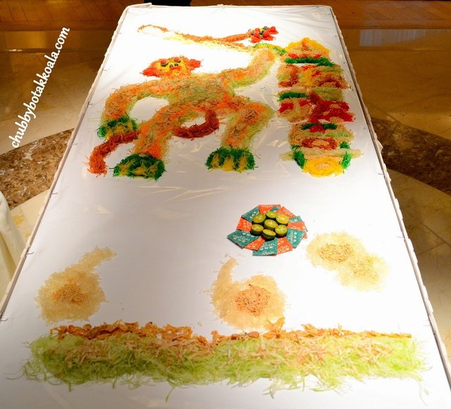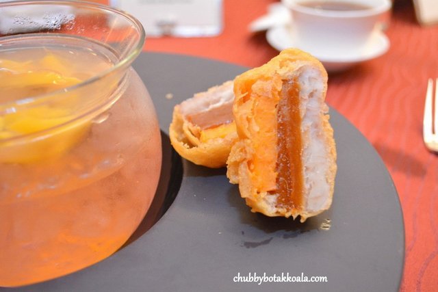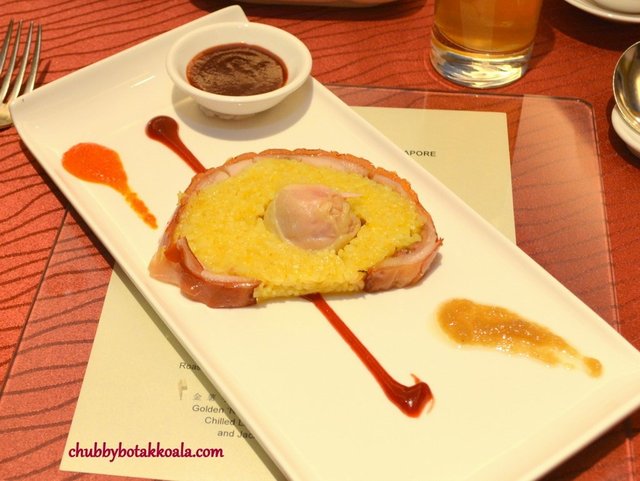 For the full review, click here:http://www.chubbybotakkoala.com/2016/01/golden-peony-cny2016.htmlChinese New Year is just around the corner, in welcoming the year of the Monkey, Chef Ku Keung, from Golden Peony ('GP') has prepared stunning spread to welcome the year of the Monkey. We started with this year theme creation for Fortune Monkey Yu Sheng. Fortune Yu Sheng with Abalone, Hiramasa and Crispy Fish Skin. (风生水起; 嘻啦玛莎,鲍鱼, 金黄鱼皮金猴捞起). The one we had was the jumbo version, priced at the auspicious $888, which can feed between 30 to 40 pax. Something to consider if you are having a company CNY meal in Golden Peony. Main ingredients include Harimasa, also known yellowtail amberjack, which have firm, silky texture and rich in flavour; Fresh and crunchy Abalone; Crispy fish skin coated with salted egg to add to the normal golden pillow. The sweet sauce was delicate to ensure that everyone can enjoy the Yu Sheng to the last bite without being overwhelmed. Of course, there is a smaller version of Yu Sheng available. Price starting from $68 for small (2 to 5 pax) and $128 for large (6 to 10 pax). The elegance of dining in Golden Peony continued with Crispy Filo Swan filled with Foie Gras, Truffle and Minced Chicken. (天降横财 – 松露天鹅酥). An upgrade to the normal dim sum dish. Shaped in the form of the swan, it has a light buttery pastry that melts in your mouth. I personally like the rich velvety texture of the foie gras, which combine well with the minced chicken. The portion of the truffle slices are very generous as well. For me, one piece of this will not be enough. Canadian Sea Perch Roll with Lobster, Minced Shrimp and Fish Roe in Spinach Purée (财源滚滚 - 菠菜汁龙珠球). The lobster meat is wrapped by sea perch fillet, lightly seasoned which allow each of the ingredients to stand out. The fish roe provide a nice crunchy texture with a mini burst of explosion in your mouth. The subtle flavour Spinach puree provided a nice touch to this soup dish. Braised Abalone with ‘Monkey Head’ Mushroom, Fish Maw and Black Moss. (金猴献瑞 – 红焖发财鲍鱼猴头菇花胶). A superb robust gravy, thick and packs of flavour. The abalone was springy and crunchy, while the delicate fish maw nicely absorbs the gravy. The monkey head mushroom really soaked up the flavour, like a sponge transferring the gravy. It will be nice to have this dish with a bowl of steam rice. Roast Suckling Pig stuffed with Hainanese Chicken Rice (鸿运当头 – 沙皮海南鸡乳猪). The main attraction of this year CNY dinner at GP. The piggy is stuffed with one of Singapore iconic dish, Hainanese Chicken Rice. I like the crispy skin on the pig which has minimum amount of pig. The chicken rice is a little bit mushy, while the chicken thigh used to roll the rice is succulent. Each slices of the sucking pig is served with chilli sauce, sweet suckling pig sauce and mashed ginger. For desserts, Golden ‘Nian Gao’ with Sweet Potato and Yam Chilled Lemongrass Jelly with Aloe Vera and Jack Fruit in Sour Plum Juice. (阖家团圆 – 金薯芋头年糕拼菠萝蜜话梅芦荟冻). The chilled dessert is just refreshing, especially with the infusion of sour plum juice. Meanwhile the nian gao is sandwiched between sweet potato and yam provided a nostalgic feel of the CNY. Overall, it was a very good all round dining experience in Golden Peony. The Yu Sheng and dishes that uses traditional ingredients such as abalone and fish maw are nicely executed. Being innovative, Chef Ku Keung also pushes the boundary by stuffing the suckling pig dish with Singapore iconic dish. The use of Foie Gras, Truffle and Lobster provided the WOW factor in CNY dishes served in Golden Peony. Definitely a place to consider for this year CNY meal. Cheers!! Thank you very much to Conrad Centennial Singapore for the tasting invitation.…查看更多