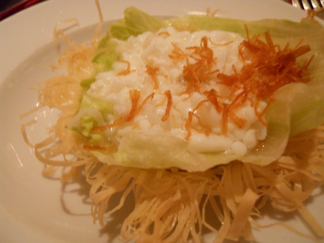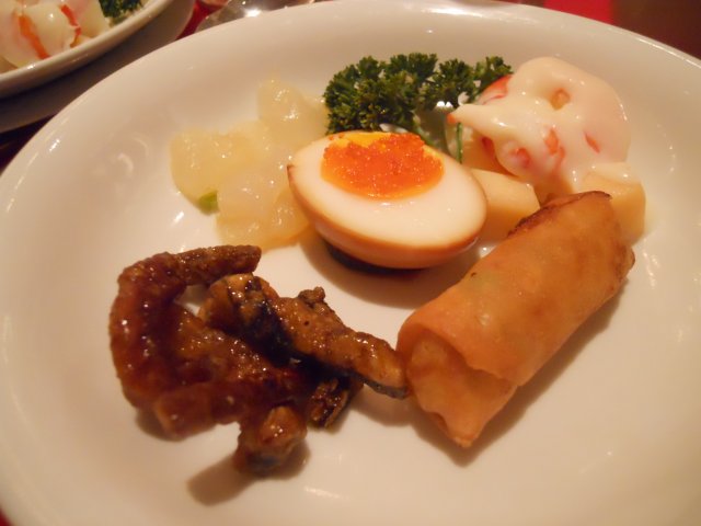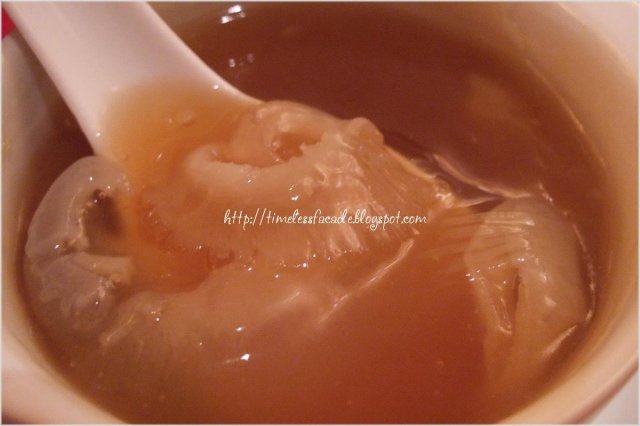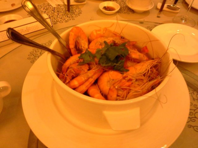 I had dinner at Grand Shanghai at Grand Copthorne Waterfront Hotel. The first dish was the cold dish comprising ngo hiang, octopus, jelly fish, prawn and sotong ball. The jelly fish was chewy. Ngo Hiang was spicy and good as it was well fried. The prawn blended well with the salad cream. The second dish was the clear doubled boiled Abalone soup with snow jelly. The soup was clear and taste of seafood sweetness. The abalone was tender and complete. The third dish was the smoked duck slice in plum sauce served with deep fried Chinese bun. I love the smoked duck slice but I did not enjoy the deep fried Chinese bun. When the bun had been fried, it became harden and together with the slice meat, I did not know how to eat. I prefer the steamed bun instead of the fried bun. The plum sauce was good. The fourth dish was live prawn in shiro miso soup. The prawn was served to us in a deep bowl instead of plate as it showed that the prawn was soaked in the soup. When the prawn shelf had been removed, I used the miso soup to go with the prawn. In this way, the prawn would not be dry when I ate. Besides the prawn shelf was so soft that I ate together with the prawn. That was a way to consume natural calcium. The fifth dish was the braised giant top shelf and mushroom with young vegetable. The mushroom was soft and moisture with rich sauce. Not only that, the young vegetable deserved praise. They were soft and yet still maintain freshness, not turning yellow. The sixth dish was the steamed fresh Garoupa. It was a full Guroupa of 5 kg. The meat was fresh and the meat cooked with ginger, celery and good quality sauce. It was well cooked. The meat did not turn out to be rough. The seventh dish was stewed Ee Fu Noodle with shredded chicken in barbeque sauce. I could not find any shredded chicken in my bowl. But one thing for sure was that excellent barbeque sauce was used to stew the noodle. The noodle had become slow and yet still maintained its elasticity. The last dish was Chilled Black Sesame pudding with Almond & Mango Sauce. It was a colourful dish with mango sauce spread as the base on the plate and scattered with strawberry. The sesame pudding was able to maintain its shape well. That shows that sufficient gelatin had added to maintain the firmness of the pudding. Numerous black sesame seeds could be found in the pudding. It was a wonderful dessert which sweetness everyone’s taste bud. I greatly enjoyed the meal. …查看更多