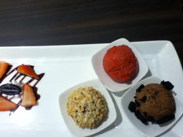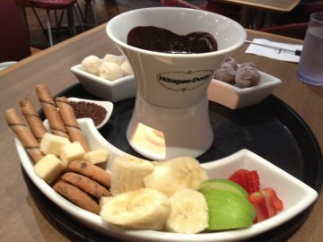 After craving for the Chocolate Fondue for quite some time, my friends and I decided to head to the Haagen Dazs restaurant to satisfy our cravings as well as do some catch up with one another :)Although we arrived at the place at dinner time, there wasn't much diners around and we were directed to our seats promptly. We ordered the Chocolate Fondue set which came shortly. There were four different flavors of ice cream served, as well as some cookies and fruits. I had to admit that the small treats tasted so heavenly especially when dipped inside the hot chocolate :) On the other hand, the chocolate was really warm and rich, definitely a must try for all chocolate lovers!…查看更多