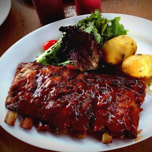 For more details, please visit http://www.foodesteem.com/2015/02/handlebar.htmlHandlebar is just right behind the Water Venture building. There is no designated parking lots, so you may park anywhere as long as road is not disrupted for other drivers.Handlebar is pretty spacious in its outdoor seating, while indoor can be limited, but housed with various interesting ornaments for viewing pleasure. It has the funky ambiance which made us wander around the place for quite some time.Another interesting thing about Handlebar is their grenade-shaped bottles for salt and pepper, and also the container used to place all the sauces and cutlery.Blossom Onion ($12.00). Use of white onions, sliced and fried to crisp. I am not a fan of onions, but the taste of blossom onion does not parade the strong pungent smell of onions, instead it has a slight sweet taste, which has now become my favorite.Cocaine Wings ($12.00). For those who are not a frequent spicy eater, the low level might be barely manageable. We are able to manage the low level but taking the level up to medium might really need people with enough courage. Wings are tender and juicy, with the fried wings dabbed with spicy chili oil.Righteous Ribs ($28.00). Sweet BBQ ribs, easy to slice and tender to chew. For the rib-likers, this is a sure-to-order dish.Southern Country Chicken Steak ($22.00) with mashed potatoes and supposedly baked beans or boiled vegetables. Choice between fried or grilled chicken breast, I chose the latter and without a choice came with boiled vegetables. Perhaps Handlebar can do better in their plate presentation, as the use of big plate make this dish seems a little on the minimalist style, and therefore less tempting than the Righteous Ribs.Jumbo Chicken Dog ($12.00) which also come with fries. What seem to be the easiest dish to prepare among the 3 mains, was the last to arrive on the table. Fries which look-supposedly to be placed on the same plate, but came separately instead. Chicken dog tasted rubbery, as though it wasn't cooked at all, and seem cold. It was left a quarter unfinished due to this.Place wise is definitely out of the way, but seems a good place for some drinking and chilling out with friends-alike through the night with some beer and food. While most of the mains and sides are pretty yummy and worth a return trip, the Jumbo Chicken Dog dropped a few ratings.For more details, please visit http://www.foodesteem.com/2015/02/handlebar.html…查看更多