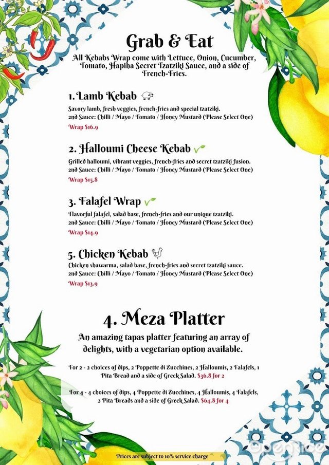 Hapiha Mediterranean Taverna (新加坡) 網上訂座即賺Rice Dollars 網址: https://s.openrice.com/eKbSB01hKi300 地址: 5 Ridgewood Close, G1, Clementi, Singapore 電話: +65 8081 9488