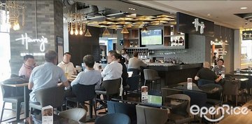 The outlet here was much smaller than other outlets under the chain. For a Saturday night, the place was packed and there was only one service staff available, who was also the cashier and the bartender. We had to wait quite awhile to be served, and the food took quite awhile to be served. Guess there could also only one staff in the kitchen too. The menu here was much limited comparing to other outlets. There was no desserts served here.Fish Cracklings ($14)Cracklings fish skin tossed with house blend of spices, served with aioli.The fish skin was light and crispy.Mushroom & Truffle Oil ($23.90)Crisp flatbread with aromatic garlic mayonnaise, field mushrooms and a drizzle of truffle oil for a pleasing earthiness.Compared to the version which I had eaten at Boat Quay outlet, the version here was lacking of the truffle oil smell. The flatbread was not as tasty as what I had before. Not bad but not there.Triple Sausage Platter ($24.90)Succulent chicken cheese sausage, spicy chicken sausage and Italian pork chipolata served with sauerkraut and onion rings.The serving looked rather small when compared to the picture on the menu.Basque Chicken & Raisin Pilaf ($25.90)A Mediterranean-inspired combination of Basque Cornish chicken with rosemary and raisin pilaf riceThe chicken was a bit dry inside, but lucky got the sauce to help it.Prawn Star Pasta ($22.90)Juicy tiger prawns tossed with al dente spaghettini with fresh chilli and aromatic crustaceans-infused oil then topped off with Japanese seaweed.Did not see the stated seaweed, but the simple looking dish tasted not bad.Fillet o' Harry ($18.90)Nachos-breaded Halibut fillet topped with jalapeno cheese sauce and tartar sauce, held together between toasted burger buns. Served with crisps and kimchi-slaw.The breaded fish was much smaller compared to the version which I had before at Boat Quay. Quite disappointed.Harry's signature Club ($18.90)A towering treat of roasted chicken sandwich with the full works : roasted chicken slices layered with fried egg, bacon, tomatoes and mixed greens between brioche slices. Served with crisps and kimchi-slaw.The slaw was not evenly tossed, as certain parts not spicy while some parts too spicy.Choco-Mintini ($16)A creamy cocktail with a kick : vodka shaken with creme de cacao and creme de menthe, milk and Baileys.A minty milky drink, that was not that strong in alcohol.Jungle Juice ($16)Coconut, banana, and muskmelon liqueurs shaken with pineapple and lime juices.Refreshing fruity drink.Cute-cumber ($8)A refreshing blend of mint leaves and cucumber topped with soda.Minty soda drink.Tropical Freeze ($8)A mango-based blend of sweet tropical flavours.Fruity ice blended drink.…查看更多