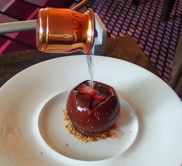 Renowned French-inspired Japanese Patisserie "Henri Charpentier" has finally opened their first global dessert salon in Singapore in Oct 2014! Henri Charpentier was nestled among lush greenery on the top of Dempsey Hill, just beside "House" restaurant.Exclusive dessert only available in Singapore! Sautéed pineapple, caramel-flavored chocolate mousse and dark chocolate mousse are placed in a bowl resembling a flower made of sugar. The dessert is finished by being flambéed with orange liqueur. Upon being doused with the flaming liqueur, the sugar bowl begins to melt away, flowing down the sides of the dessert tower. The sugar bowl was very solid, hard to bite. I like the chocolate mousse, but the liquor was a tad too much so it tasted quite bitter.. This dessert was quite high quality but the taste was not as good as the dome (below).Exclusive dessert only available in Singapore and also the most expensive dessert here that you have to try!!! Upon pouring the warm liquor, the chocolate sphere quickly melts away to unveil the hidden sweet treat! The chocolate sphere encloses a chocolate parfait biscuit of fraise d'amande (Strawberries & Almonds). I prefer this dessert - Dome than the flower temptation! The liquor was not that strong so the bitterness was very mild. With the chocolate & rasberry sauce, the whole combination here was excellent with a touch of crunchiness and sweetness.For full review & photos, please visit:http://summerlovestoeat.blogspot.sg/2014/11/henri-charpentier-singapore-9a-dempsey_6.html…查看更多