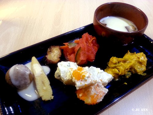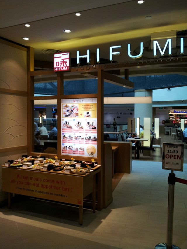 Hifumi is a cheerful new Japanese Restaurant on the top floor of Plaza Singapura's newly opened extension Atrium at Orchard. The restaurant offers a wide variety of Japanese set meals with rice and miso soup. The highlight is the inclusion of unlimited visits to the self service appetizer bar. When it first opened, free flow of hot and cold non alcoholic beverages from the self serve drinks bar was included in the price of the set meal. Now one needs to top up $1.90++ for unlimited access to the drinks bar which is still great value.It is obvious that the restaurant is understaffed but if the waiters and waitresses were overworked, kudos to them for not showing it. They managed the queue and seated the customers efficiently. My friend was happy with the Saba Fish Set $11.90++. The Pork Tonkatsu Set was also great value at $12.90++. A nice touch was the provision of a mini mortar and pestle for me to grind the sesame seeds to add to the tonkatsu sauce. The chef turned on the heat too high so the tonkatsu was not evenly coloured and parts of it were a bit dry. The cabbage could also have been shredded more finely. However, at these prices it is unrealistic to expect fine dining. The food quality is above average and comparable to other popular Japanese restaurant chains like Ichiban Boshi and the bentos at Sakae Sushi. As it was 30 minutes to the time for last orders when we had a table, some of the popular items in the appetizer bar were already depleted - such as the cheese fondue, marinated jellyfish and agedashi tofu. I was happy they replenished the petit chawanmushi, and helped myself to the rice crackers, eggplant, sliced pumpkin salad and stewed radish.Hifumi is a great place for lunch or dinner, and 90% of the rice sets are priced lower than similar sets at Ichiban and Sakae. Worth a few more visits to try the other sets as it is a matter of time before they adjust their menu prices to reflect demand.…查看更多