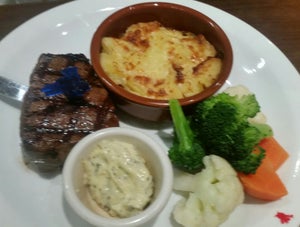 For more reviews, visit www.umakemehungry.comHaving tried Hippopotamus during my trip to Paris years back, I decided to revisit the Hippo themed restaurant in Singapore. They are owned by a France based company and has strong reputation in Paris region, known for their wide range of Beef Steak Cuts.The ambience is contemporary and relaxing, added with a friendly services from their staff, suitable for gatherings and even a favourite meeting place for meals.Complimentary starters like bread and packaged butter were served while we waited for the mains to be ready.We started with the French Onion Soup served in the typical white lionhead bowl loaded with yellow onions and smothered with melted cheese and soaked bread. Simply love the taste of the soup though it is not the best I had ever tried. I decided to be adventurous for the night and ordered something different to experience the fine gourmet, Hippo Blue Cheese Burger. The burger were topped with crumbled blue cheese with glazed onions underneath. It was also complemented with Roquefort sauce. Two chosen sides added to the main were baked potatoes with bacon bits and sauteed mushrooms. Under the classic cuts, we have chosen the Rump Steak from New Zealand, an extremely flavourful cut which has a leaner yet firmer texture. We were very pleased with the medium well doness paired with brown mushroom sauce, added with sides like potato gratin and steamed vegetables. Topped with a scoop of vanilla ice cream over the moist sliced of French toast with Nutella. A perfect pleasing dessert for sweet tooth. Creme Brule is their signature creation with a thin layer of caramelised brown sugar and underneaths lies a smooth creamy texture with a good consistency of butter rich flavour and hints of vanilla.Overall experience was above average with attentive service and constant refills of our plain water. However a little wait is required for the dishes to be served up to the table. …查看更多