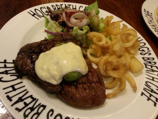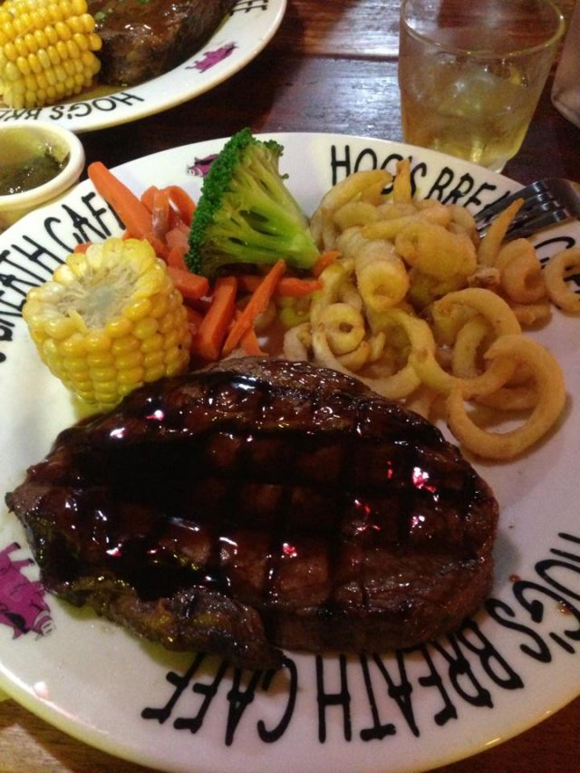 Hogs breath cafe is pretty poplar in Australia, and has one of the nicest steak in Singapore, but few people was there in the restaurant when i went on a weekday afternoon. Set lunches are available, but there can be ongoing credit card promotions that can be as good as 1-for-1 main course. I had the cream cheese avocado steak, and being my usual greedy self, i upsized my steak to 300g (usually 200g is served) for an extra $7. I had medium steak, and this is one of the few places that actually give me decent medium steak that isn't oozing with blood, or cooked till tough. The meat is juicy, tender, and goes great with the sauce. But the portion is too huge, such that i did not touch my sides at all. A great place to go for decent steak! …Read More
