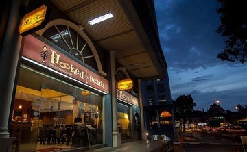 For more details, please visit http://www.foodesteem.com/2015/05/hooked-on-heads.htmlHooked on Heads. The easiest way to get there from Upper Thomson Road is to enter from Jalan Todak and followed by a U-shaped turn to get to Sin Ming Road. Stir-fried Garlic Kang Kong ($8.00), which is supposed to be sambal kang kong. We requested for the stir-fried and here comes the crunchy vegetable with a tint of garlic taste. Mixed Assorted Vegetables ($8.00) is another "green" dish to make our meal seems as though healthier. What I like about both their vegetable dish is that Hooked on Heads do not tend to overcook. Seafood Tofu ($10.00). I love tofu dishes that are stewed and have those super thick gravy that can also goes along very well with the rice! Hooked on Heads did not disappoint me, and quite like the feel of the soft tofu rumbling in my mouth before slipping down my throat. Prawn Paste Chicken ($10.00). The savory taste of the juicy chicken and crunching sounds of the fried skin is too hard to resist. This plate of nicely fried wings is a must-order item when in Hooked on Heads. Curry Fish Head ($42.00 for whole head). If you are dining in Hooked on Heads, their fish head is present on most tables, and the smell of it is circulating around the restaurant. Having a little mouth-itch, I separately ordered the Banana Fritters Special ($7.00). To be honest, it wasn't quite what I expected, and I seriously prefer the usual deep-fried banana as a whole. But having tagged the word "special", it has to be unique in a way? Dough is not fried to crisp, but the adding of icing sugar and dipped with mayonnaise and maple syrup gives it a different taste, and I felt as though I was munching on the McDonald's pancakes! Banana inside is not totally fried, and it does seems to be a wonderful snack or dessert for kids. Hooked on Heads seems like a usual tze char stall, but the food variety is quite an exclusive to them as we don't see such amount of delicacies sold in other restaurants. Definitely a return trip for me again, to try on their other food which I believe I will have no doubt on the same standard when served to my table. For a moment, I thought I went into a Peranakan tze char stall, and at a time, I thought I was in a Thai cuisine restaurant too! It is like a mixture of some and being blended into a place for diners to enjoy delicacies from different cultures, and it was indeed an enjoyable meal.For more details, please visit http://www.foodesteem.com/2015/05/hooked-on-heads.html…查看更多
