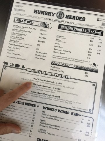 I can't actually remember what article I was reading. Whether it was top ten must try cafes in Singapore or hidden gems in Singapore but this particular restaurant caught my attention.Superhero themed restaurant?!!! I'm definitely trying! Swung by this noon and when I stepped in.... I was like WOOOOOWWWOOWW. It has two levels!!We came in at around 4ish and they open at 4pm so we were the only customers. We placed down our bags, ordered our food then we went upstairs immediately LIKE WE NEED TO EXPLORE. CANNOT WAIT. They also had this wall of superheroes figurines with thirteen mini televisions right below it near the entrance. Seated below was this dark brown vintage leather chesterfield sofa that looks way too exquisite. Was telling Clare that it reminded me of those rich kids' habbohotel lolololololHere's the best part: Nice To Meat You (half rack pork ribs, sirloin, de-boned chicken leg, pulled pork) that serves two to three. This platter cost $62 and all platters are served with fries / roasted potatoes & sautéed corn. (CHOOSE THE ROASTED POTATOES THEY ARE SOOOOO GOOD!)We both were like basically, "Omg. This is so nice." "Try this! This is good also!!!"…查看更多