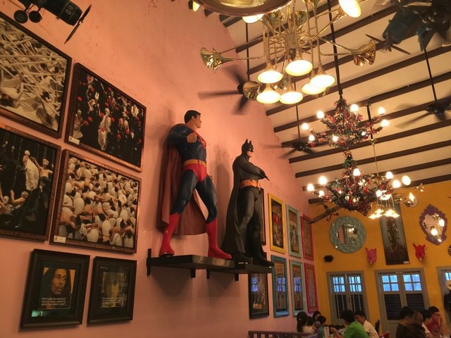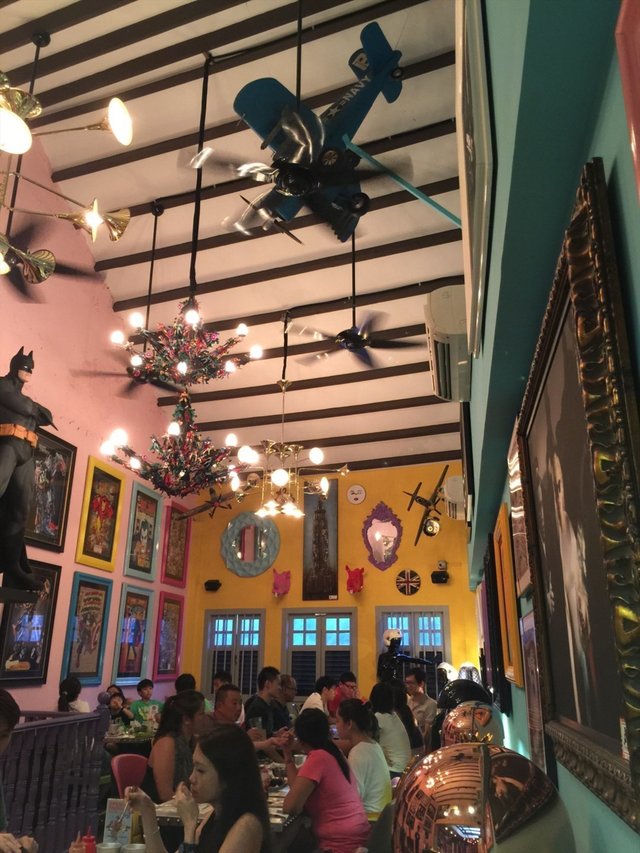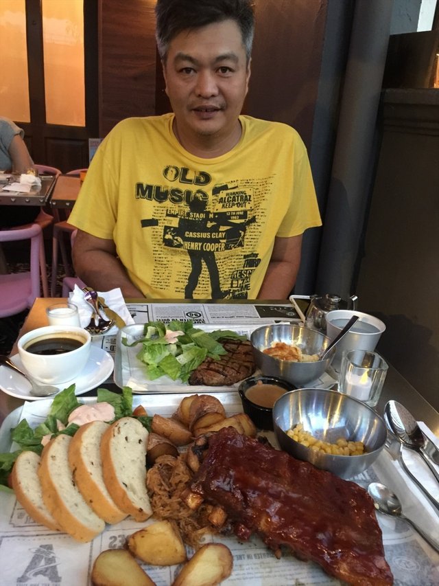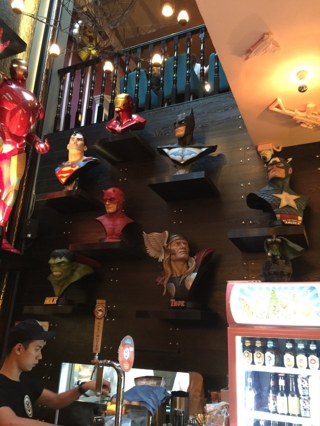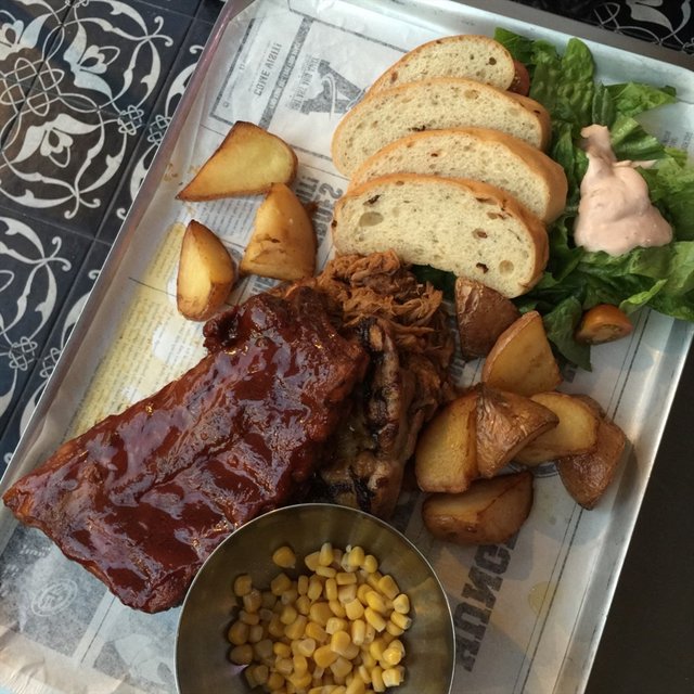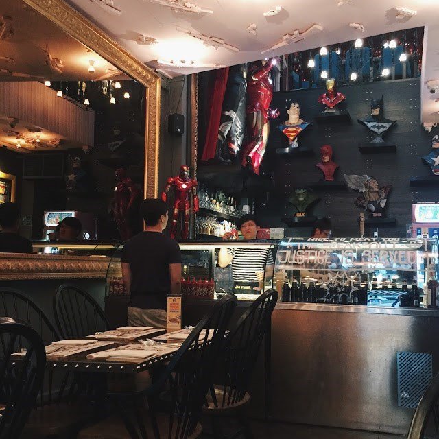 I can't actually remember what article I was reading. Whether it was top ten must try cafes in Singapore or hidden gems in Singapore but this particular restaurant caught my attention.Superhero themed restaurant?!!! I'm definitely trying! Swung by this noon and when I stepped in.... I was like WOOOOOWWWOOWW. It has two levels!!We came in at around 4ish and they open at 4pm so we were the only customers. We placed down our bags, ordered our food then we went upstairs immediately LIKE WE NEED TO EXPLORE. CANNOT WAIT. They also had this wall of superheroes figurines with thirteen mini televisions right below it near the entrance. Seated below was this dark brown vintage leather chesterfield sofa that looks way too exquisite. Was telling Clare that it reminded me of those rich kids' habbohotel lolololololHere's the best part: Nice To Meat You (half rack pork ribs, sirloin, de-boned chicken leg, pulled pork) that serves two to three. This platter cost $62 and all platters are served with fries / roasted potatoes & sautéed corn. (CHOOSE THE ROASTED POTATOES THEY ARE SOOOOO GOOD!)We both were like basically, "Omg. This is so nice." "Try this! This is good also!!!"…查看更多
