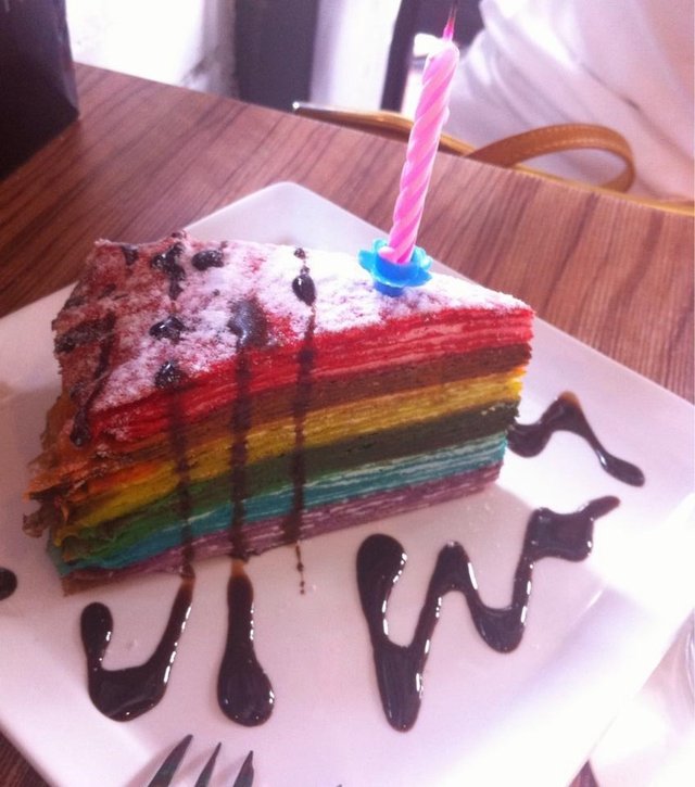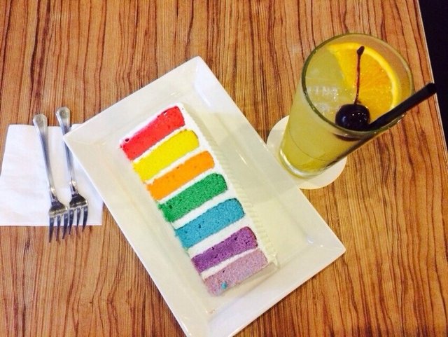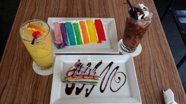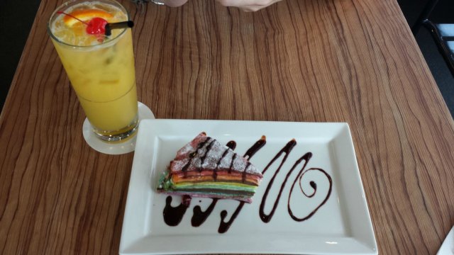 Research on instagram about cafe and randomly i saw this I AM . cafe ~I am so obsessed in their colourful dessert therefore I and my friend right after our school we head down to bugis and went for hunting this cafe . After walking and searching for 15min we finally saw the I.AM cafe ~ we ordered Rainbow Cake , Rainbow Crepes and two cocktails drink . Stir it up and also Honey Mooneythe environment of this cafe was really very good very suitable for people to chill out and to also slack there - the price was affordable as, such a big slice of the rainbow cake $7.90 and crepes cost like about the same price too. However the drinks but i forgotten how much was it . but it roughly 8-9 dollars if i did not remember correctly Anyway its is a super recommended place ! ;) bring your dates and friends here. definitely a suitable place . what I regret was i did not order there main menu meals , f i have another chance there i will sure order it and tried. …查看更多