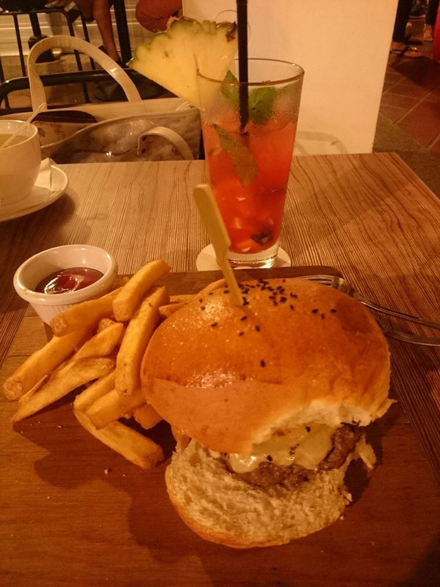 nice buzz and vibe in this busy eatery by Haji lane. the service was pretty good and attentive despite handling a full house. ordered the basic juicy burger, v good...juicy and a rather thick pattie. came with generous amt of fries. meat prob frozen type, but for 13 dollars it's fine. the mint cocktail I ordered wasn't good though....no taste of mint, only sprite. not worth. overall, nice place to hang out.…查看更多